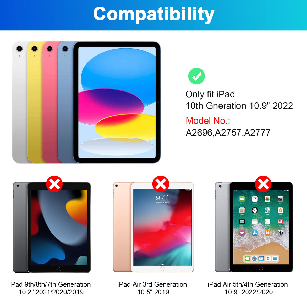 Q: Is the LAMA Touchpad iPad 10th Generation Case compatible with other iPad models?A: No, the LAMA Touchpad Case is specifically designed for the iPad 10th Generation 10.9" (2022 Release) models A2696, A2757, and A2777. It is not compatible with other iPad models, so please check the model number on the back of your iPad before purchasing.