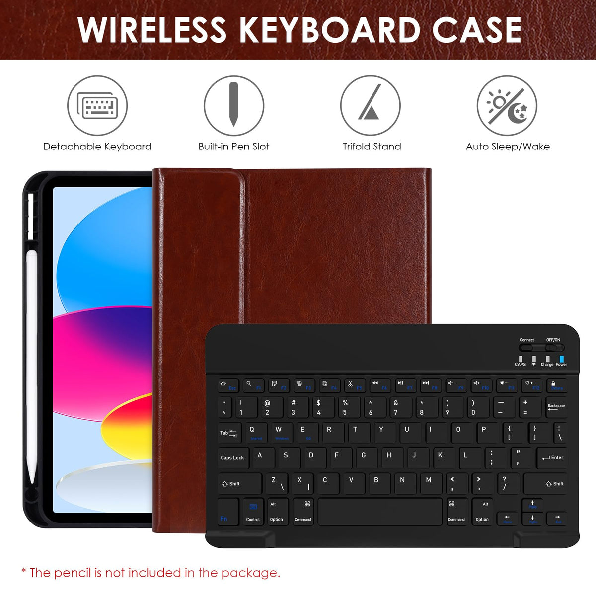 Keyboard Case For Ipad 10Th Generation Advantage Of Lama Keyboard Case: 1. Utral Slim Magnetic Detachable Wireless Keyboard Design Is Convenient For Carrying And Using. 2. With The Automatically Wake Up And Sleep Function, The Keyboard Case Can Work With Other Ios, Android, And Windows Devices. 3. The Special Function Keys, Like Sleep/Lock/Slide Show/Home/Volume, Provide You With A Good Typing Experience. 4. With An Adjustable Stand, You Can Find The Angle In Landscape Mode Just Right For You. How To Connect Pad Keyboard To Tablet? 1. Turn On The Keyboard And Press The ''Connect'' Button. 2. When The Led Light Flashes, The Bluetooth Of The Keyboard Is Opened. 3. Select The ''Bluetooth Keyboard'' For Pairing. 4. The Bluetooth Will Be Connected Automatically. [Note: Please Check The Ipad Back Model Before Purchasing.] This Keyboard Case Compatible With: 10.9 Inch:Ipad 10Th Generation 10.9'' 2022 Release(A2696/A2757/A2777) [Note: Please Check The Ipad Back Model Before Purchasing.] Packing List: 1 * Keyboard Case For Ipad 10.9 Inch 10Th Gen (Ipad Not Included) 1 * Usb Charging Cable (Only For The Keyboard, Not For Ipad) 1 * User Manual