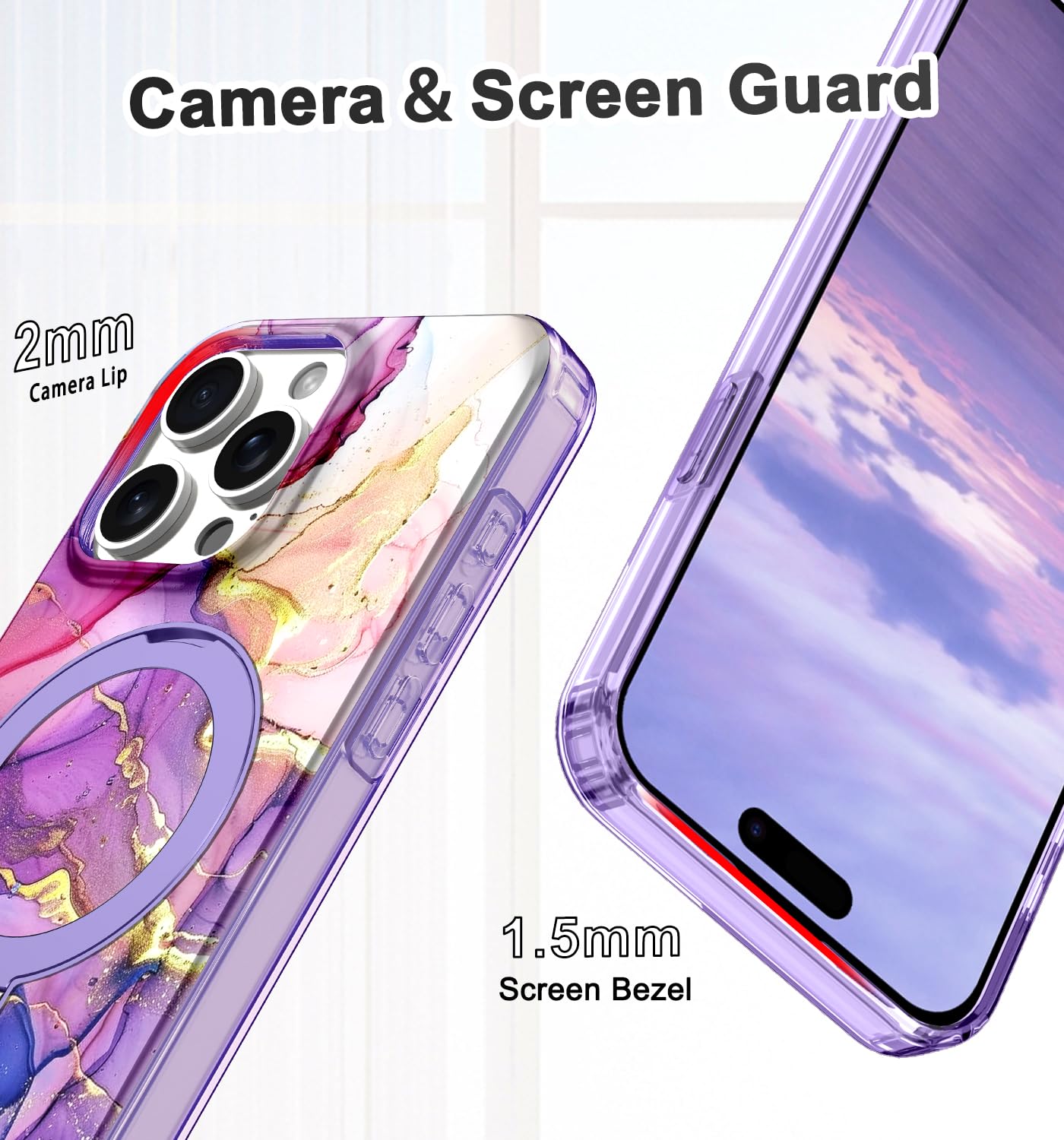 Q: What kind of protection does this case offer?A: The case provides full body protection with its high impact-resistant PC back and soft TPU edges, designed to absorb shocks and deflect impacts, ensuring your iPhone 15 Pro Max is safe from drops and dirt.