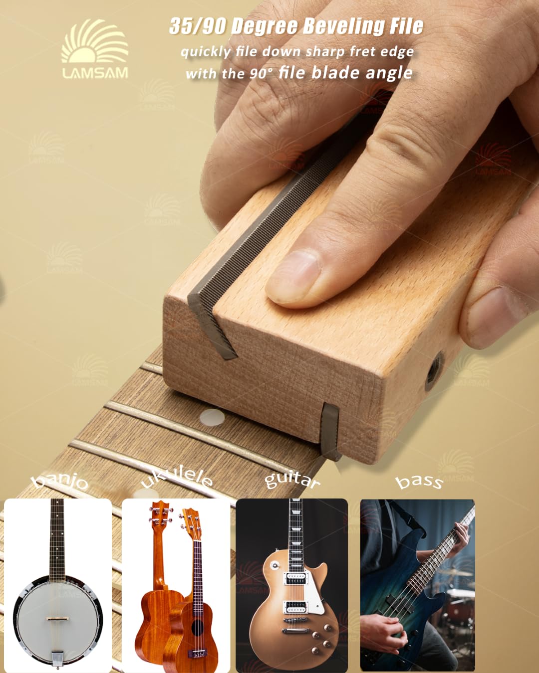 Lamsam 2-In-1 Guitar Fret Beveling Tools, Long-Lasting 35/90 Degree Fret End Beveler, Sharp Fine Coarse Filing Grits Fret Dressi