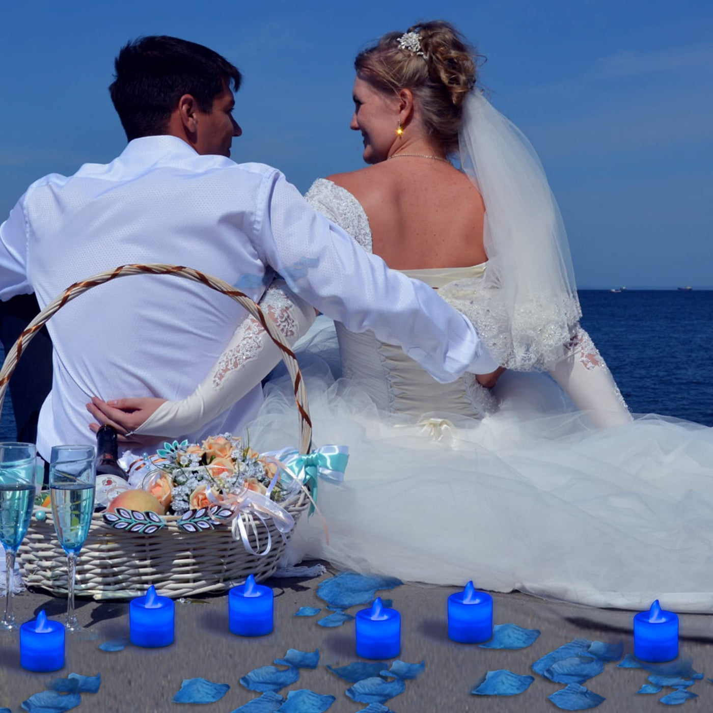Lanker 500 Pcs Blue Artificial Rose Petals With 24 Pcs Bright Flickering Blue Flameless Led Tea Lights Candles (Blue Lights With