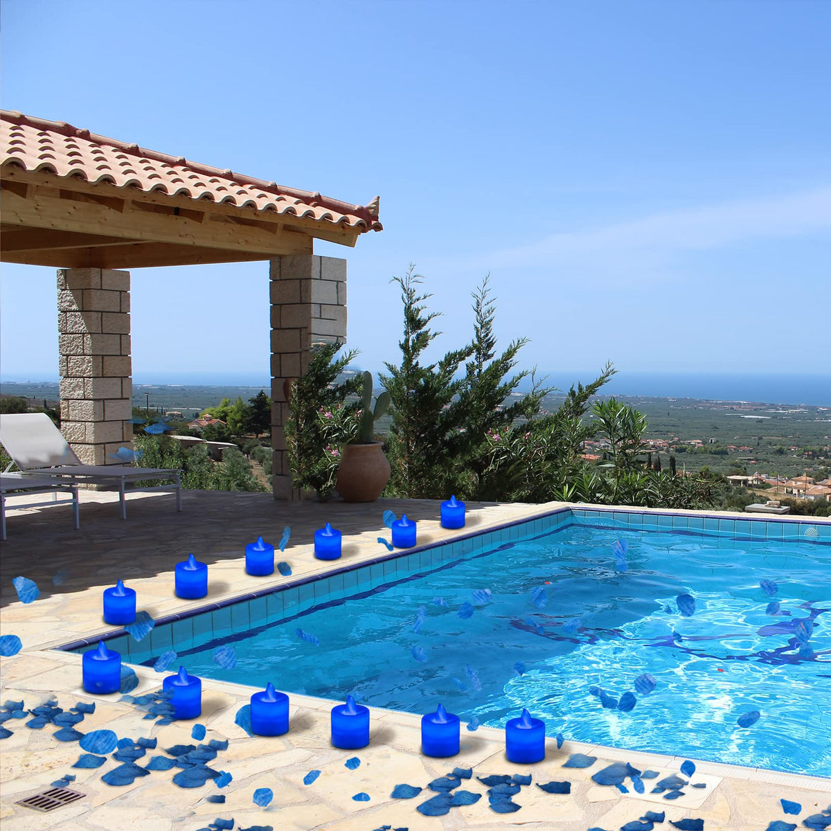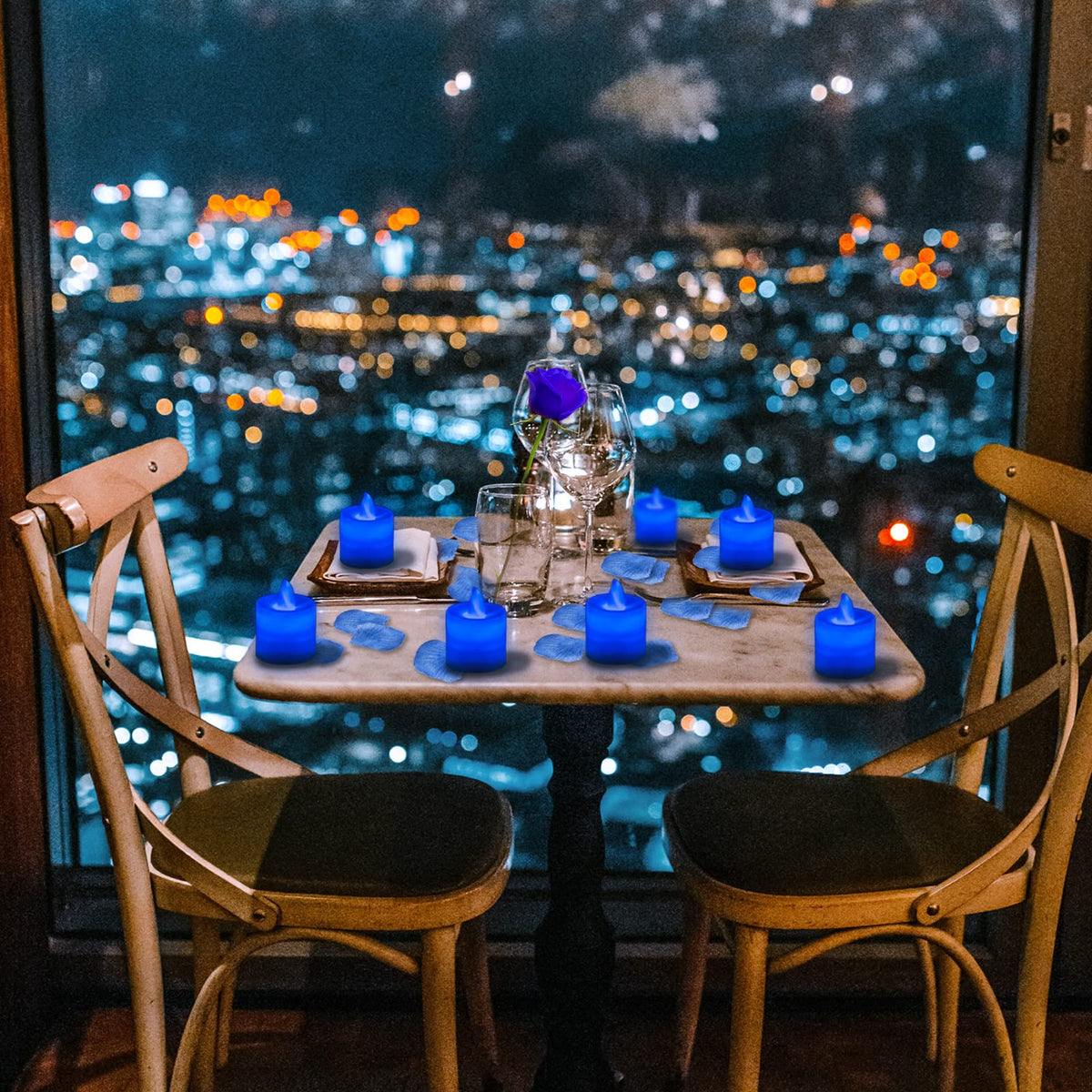 Rose Petals Color: Blue Rose Petals Size: 4.5 X 4.55Cm/1.7 X 1.7Inch Candle Material: Plastic Candles Color: Blue Light Color: Blue Candles Size: 3.7Cm X 4.5Cm/1.45Inch X 1.77Inch Candles Shape: Cylindrical Battery Specification: Button Cell Note: Please Do Not Put The Candles On The Microwave, Stoves And Other High Temperature May Cause Candle Deformation, Or Even Melt. Packing List: 24Pcs Blue Led Battery Operated Tealights Candles, 500Pcs Blue Artificial Rose Petals.