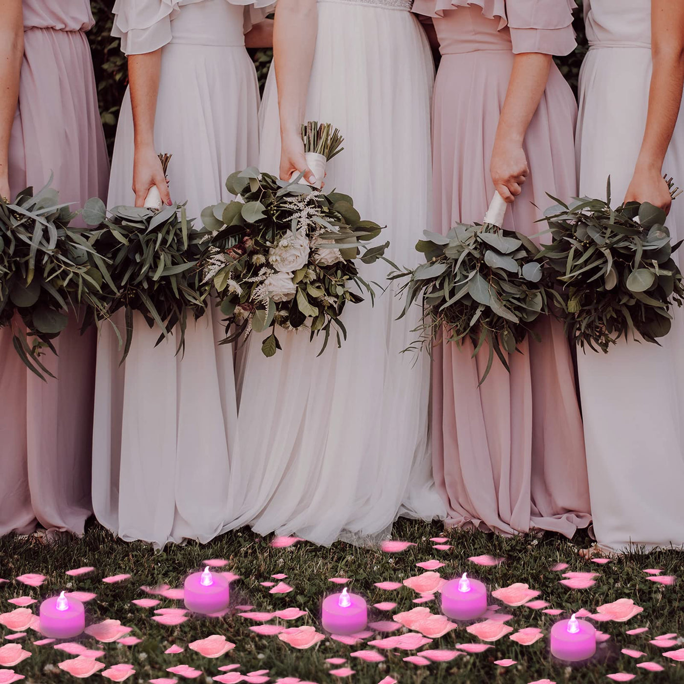 Q: How long do the battery-operated tealight candles last?A: The pink LED tealight candles are powered by replaceable CR2032 button cells and can last over 100 hours with new batteries, making them ideal for extended use during special events.