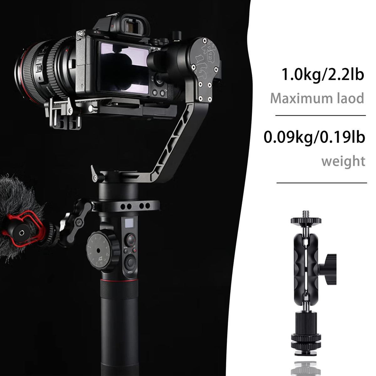 Q: Is the double ball head sturdy enough for heavy equipment?A: Yes, the Lanxire double ball head is made from high-quality aluminum alloy and stainless steel, supporting a maximum load of up to 4.4lb (2kg). This makes it durable and sturdy enough to hold heavier photographic accessories securely.