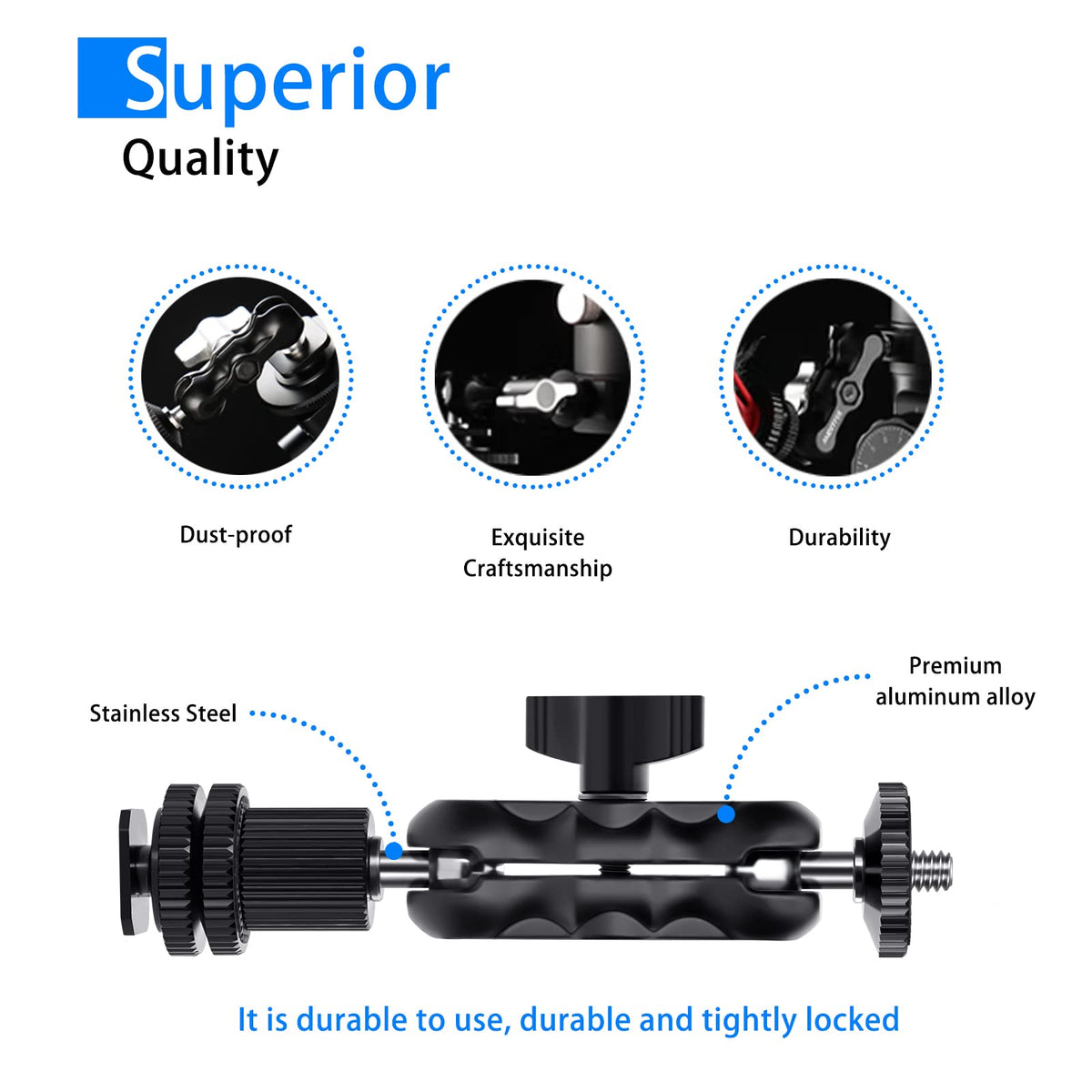 Lanxire Magic Arm Cool Ballhead Multi Function Double Ball Head Adapter For Dslr Cameras, Camcorders, Lcd Monitor, Flash, Led Li