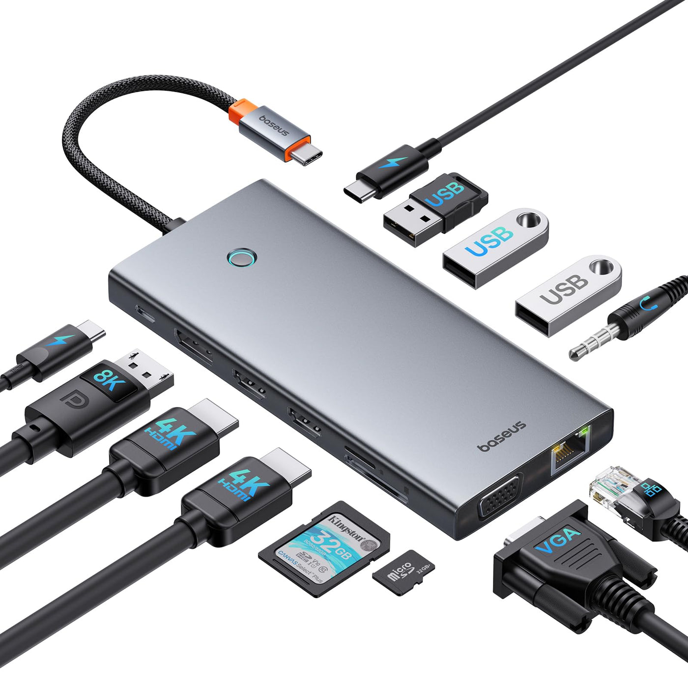Laptop Docking Station, Baseus 13 In 1 Usb C Docking Station Dual Monitor With 2 Hdmi 4K@60Hz, Dp 4K@120Hz, Vga, 10Gbps Data Transfer, Pd 100W And Ethernet For Dell/Hp/Lenovo/Surface Laptop