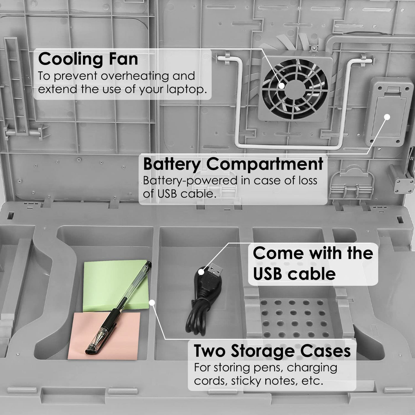 Laptop Stand With Cooling Fan And Mouse Pad,Adjustable Lap Desk For Laptop With Light,Foldable Laptop Table, Lap Stand Bed Tray Desk W/ 4 Usb Port For Bed Couch Sofa Floor (Grey)