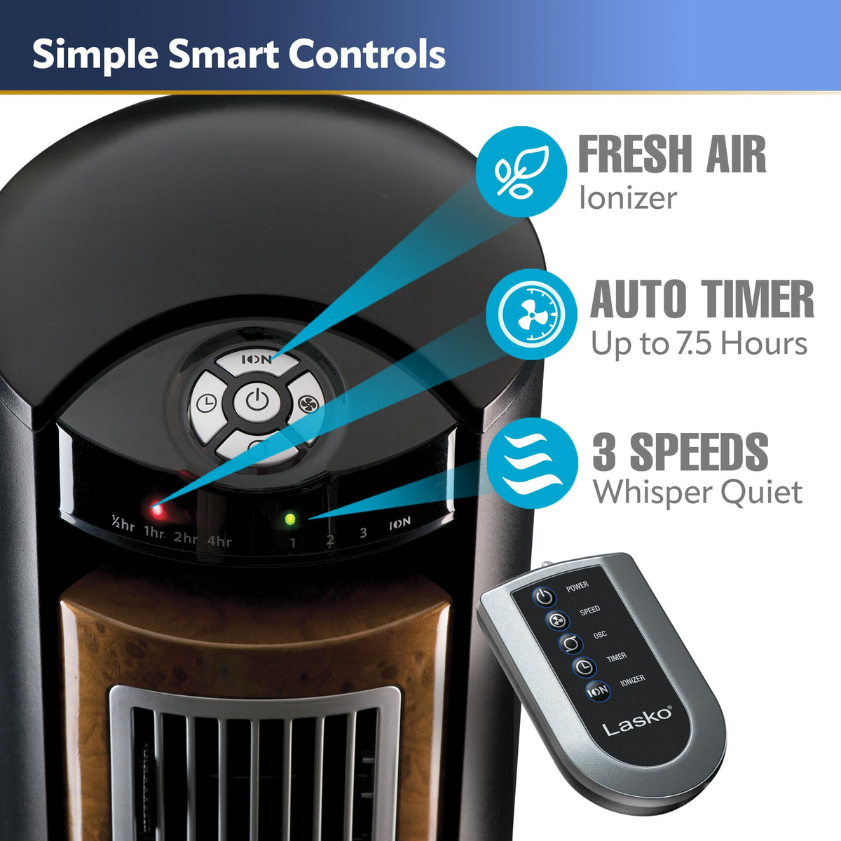 Laskos Wind Curve Tower Fans Have A Sophisticated Profile And Space-Saving Design That Blends Well Into Home Decor. The Fresh Air Ionizer Option Generates Negative Ions And Disperses Them To Combat And Dispel Air Pollution. As The Negative Ion Levels Grow, The Air Feels Naturally Fresher.
