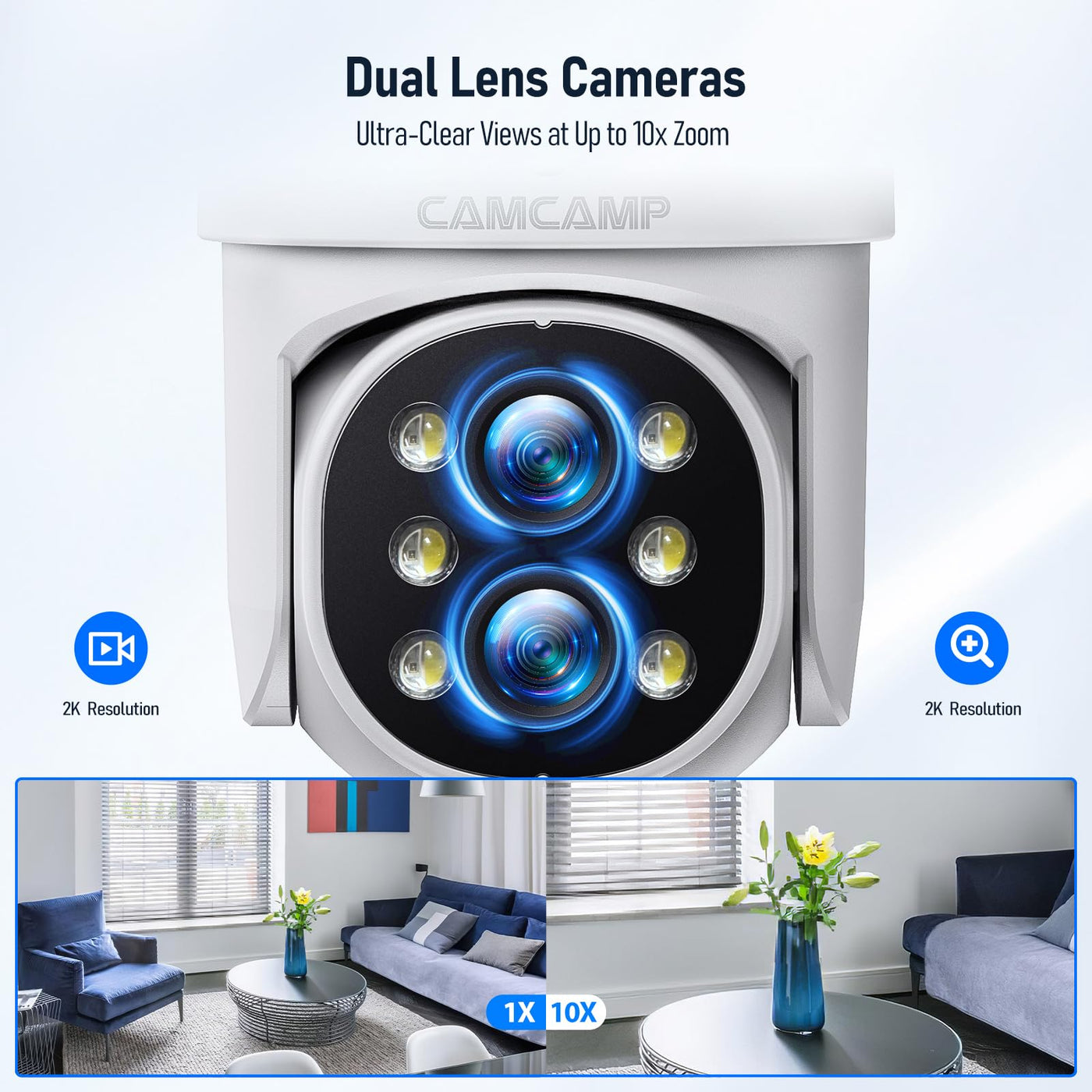 ?Lcd Screen+2 Way Audio?Camcamp Home Security Camera System With 10.1''Lcd Monitor, 4Pcs 2K Outdoor Wifi Ptz Wireless Security D