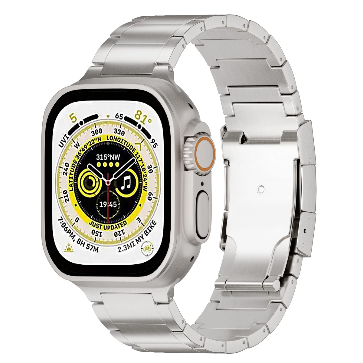Ldfas Compatible For Apple Watch Band 49Mm 45Mm 44Mm, Titanium Metal Watch Strap With Double Button Clasp For Iwatch Bands Compa
