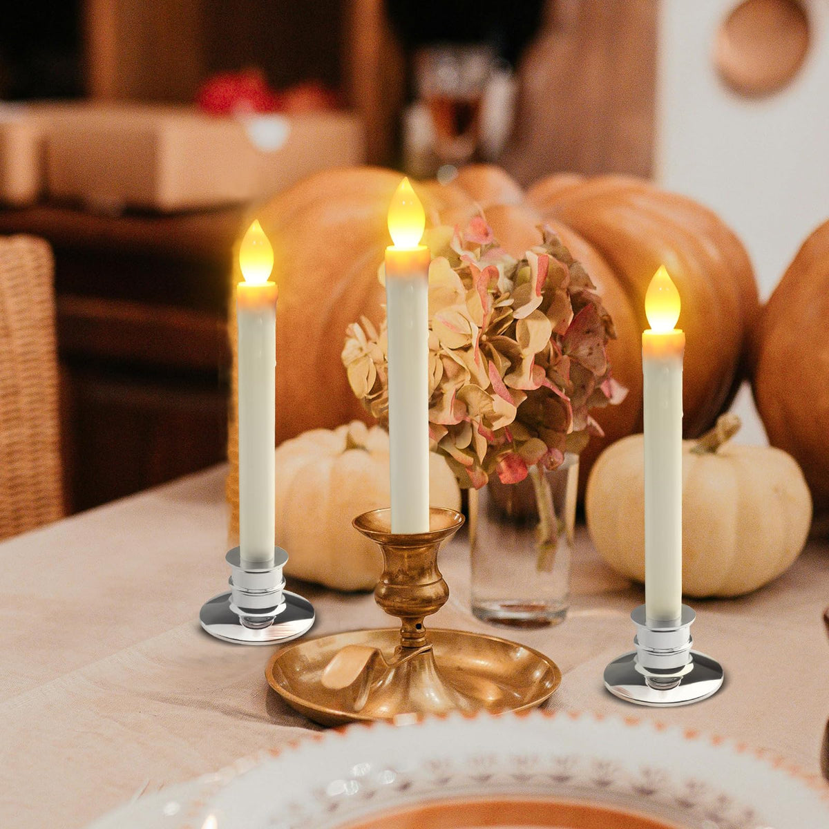 Led Flameless Window Candles With Remote Timer Sliver Base 10 Pcs Battery Operated Flickering Taper Candle Lights With Removable