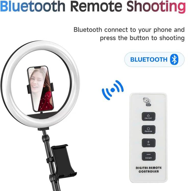 Q: What accessories come with the LED Ring Light?A: The LED Ring Light includes a universal pole phone holder that is compatible with almost all smartphones and allows for 360-degree rotation. Additionally, it comes with a Bluetooth remote shutter for easy control of RGB color and brightness.