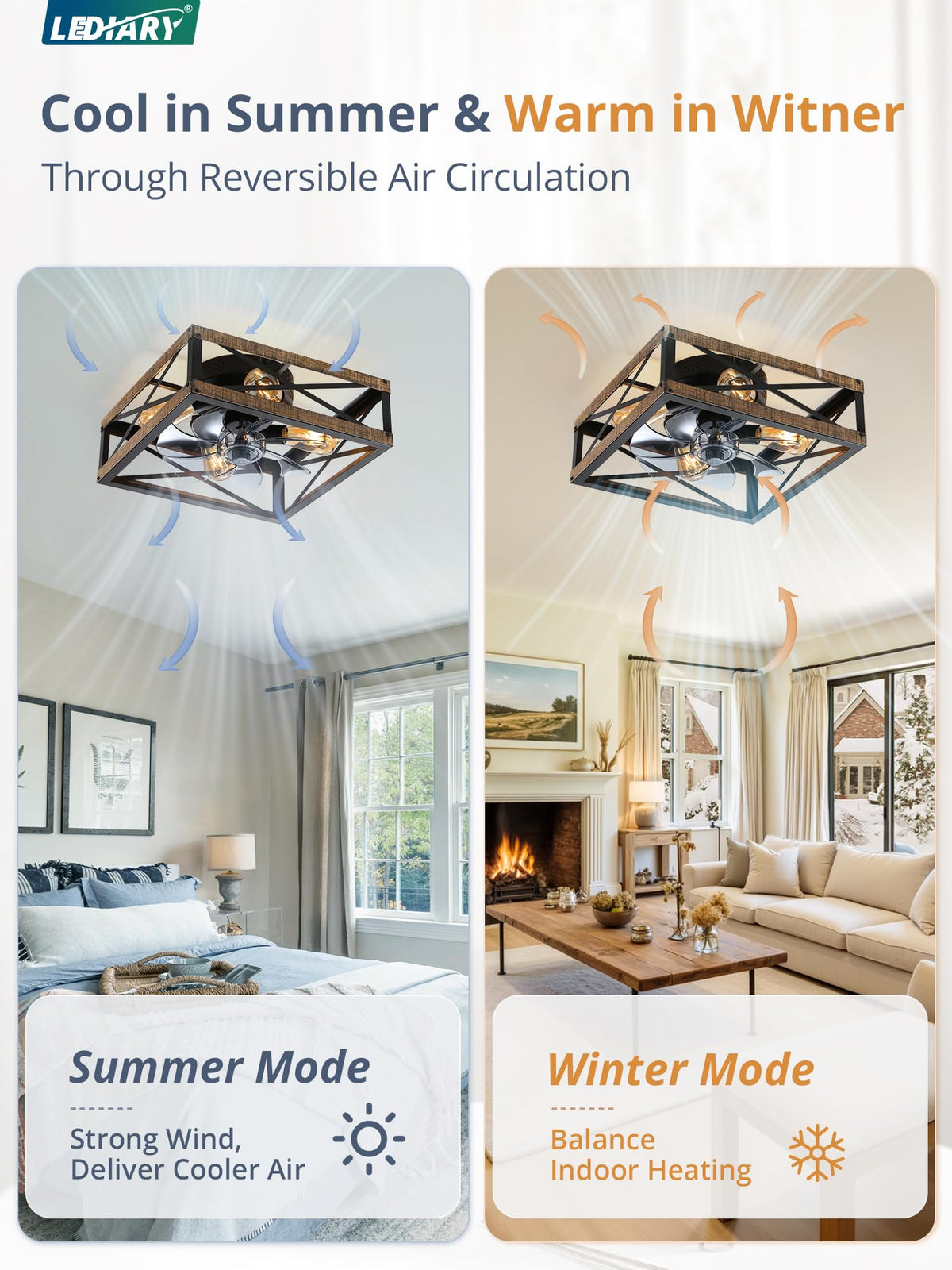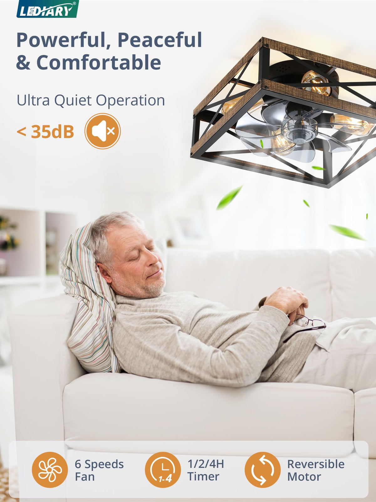 Lediary Caged Ceiling Fans With Lights Have 6 Wind Speeds, Reversible Mode, 1/2/4-Hour Timer, Natural Breeze Mode. Equiped With Powerful, Quiet And Comfortable Motor, It'S Energy Saving, Easy Assemble, Complementing Bedrooms, Kitchen, Office And Living Rooms Perfectly, Bringing A Rich Blend Of Industrial And Rustic Styles To Your Home Decor.