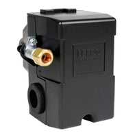 Brand New 95-125 Psi Air Compressor Pressure Switch Or Known As A Pressure Control Valve. This Switch Has Four Ports On The Bottom, One For Air Inlet Hook Up And The Other Three Ports Are Usually Used For A Relief Valve, Gauges, Or Extra Air Outlets. These Four Ports Are All 1/4'' Female Npt. This Switch Is Also Equipped With A On And Off Lever And A Unloader Valve On The Side, Which Is 1/4'' Compression, If The Unloader Is Not Needed It Does Not Need To Be Hooked Up.