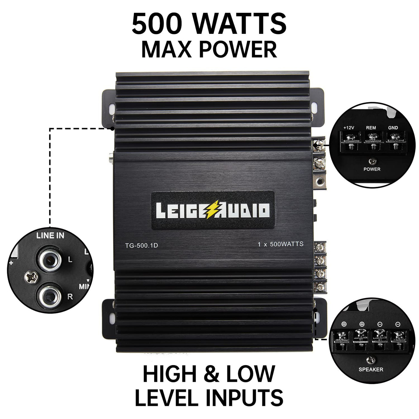 Leigesaudio 500 Watts Monoblock Amplifier, Class D, 1 Ohm Stable Subwoofer Amplifiers For Car Audio Speakers