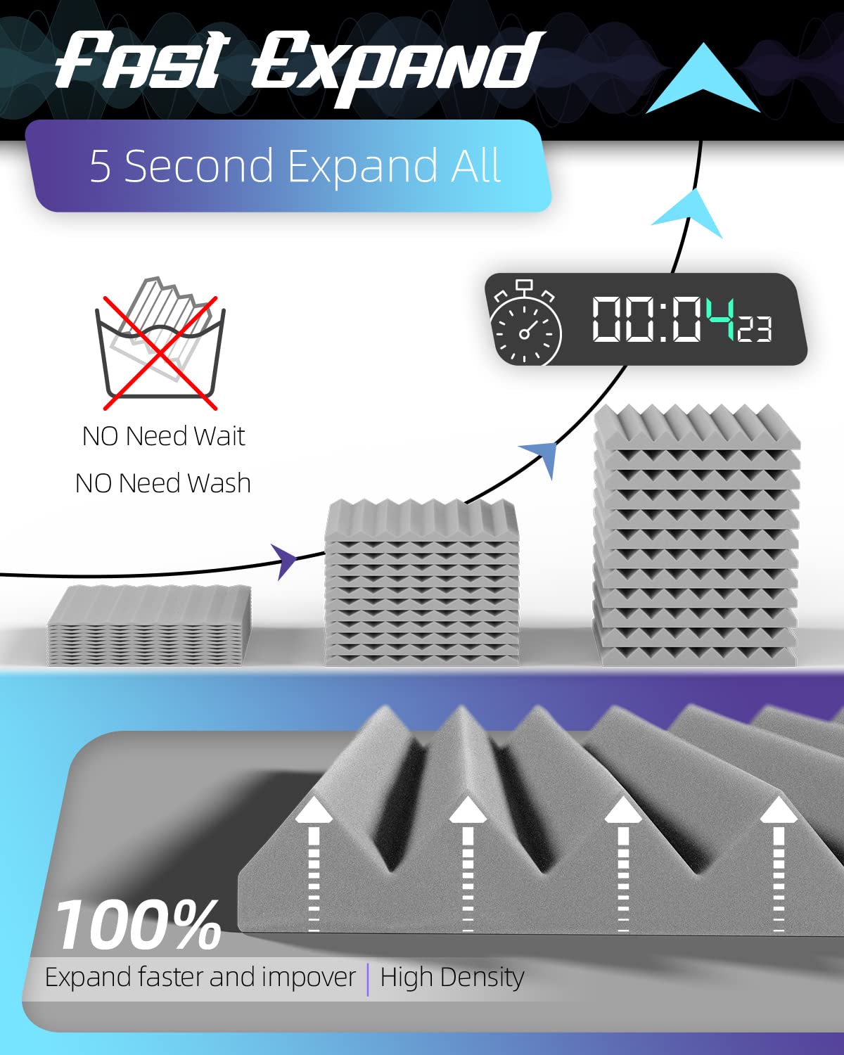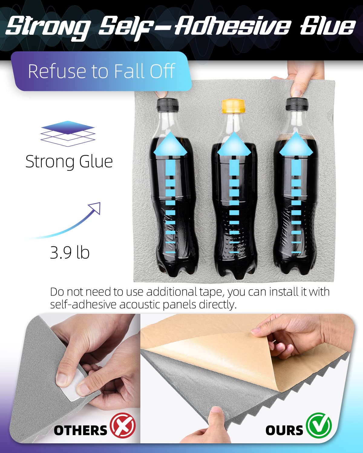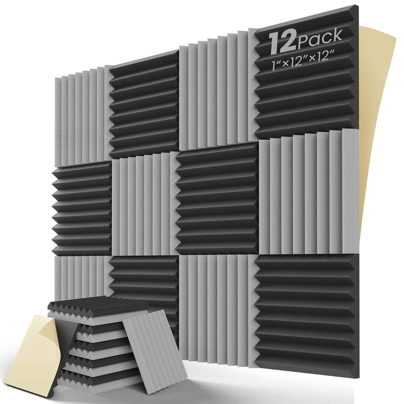 Leiyer Upgrade 12 Pack Sound Proof Foam Panels With Self Adhesive, 1'' X 12'' X 12'' Quick Recovery Acoustic Panels, Acoustic Fo