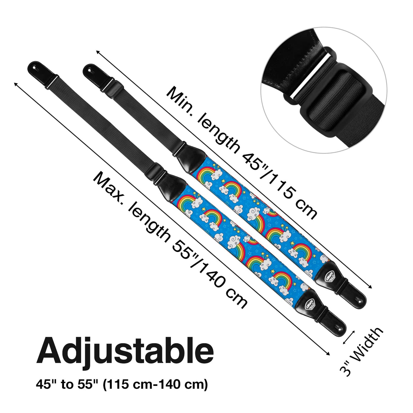 Lekato 3'' Wide 3D Sponge Filling & Neoprene Material Guitar Strap With Top-Grade Stitched Leather Ends Can Works Well On Heavy Guitars, Electric Guitars, Bass Guitars Ect. This Is The Regular Sized Strap Offering A Wide Adjustability Range From 45 To 55 Inches.It Is Durable And Relieves Pressure, Looks Amazing On Whatever Style Of Guitar You Play. Feature: Flexible, Breathable And Moisture-Wicking. The Guitar Hanging Strap Made For Your Safety Unbelievable Soft, Padded And Comfortable To Wear. Even Weight Distribution, Huge Reduction In Neck Pressure. High Quality Neoprene Material That Wont Cut Into Your Neck Looks Amazing On Whatever Style Of Guitar You Play.