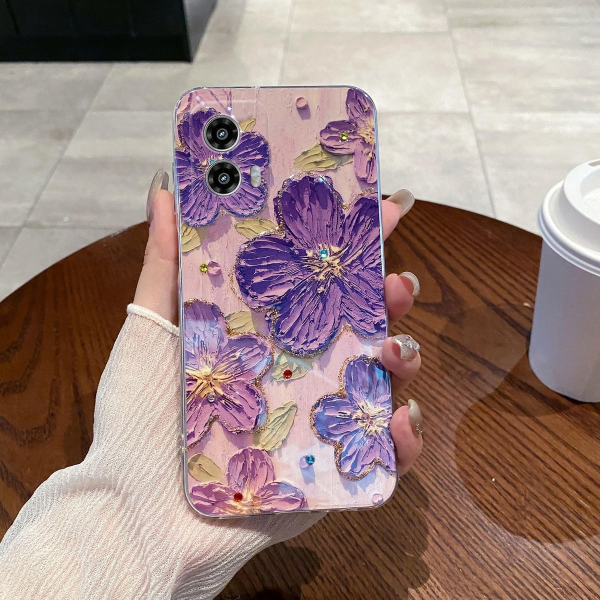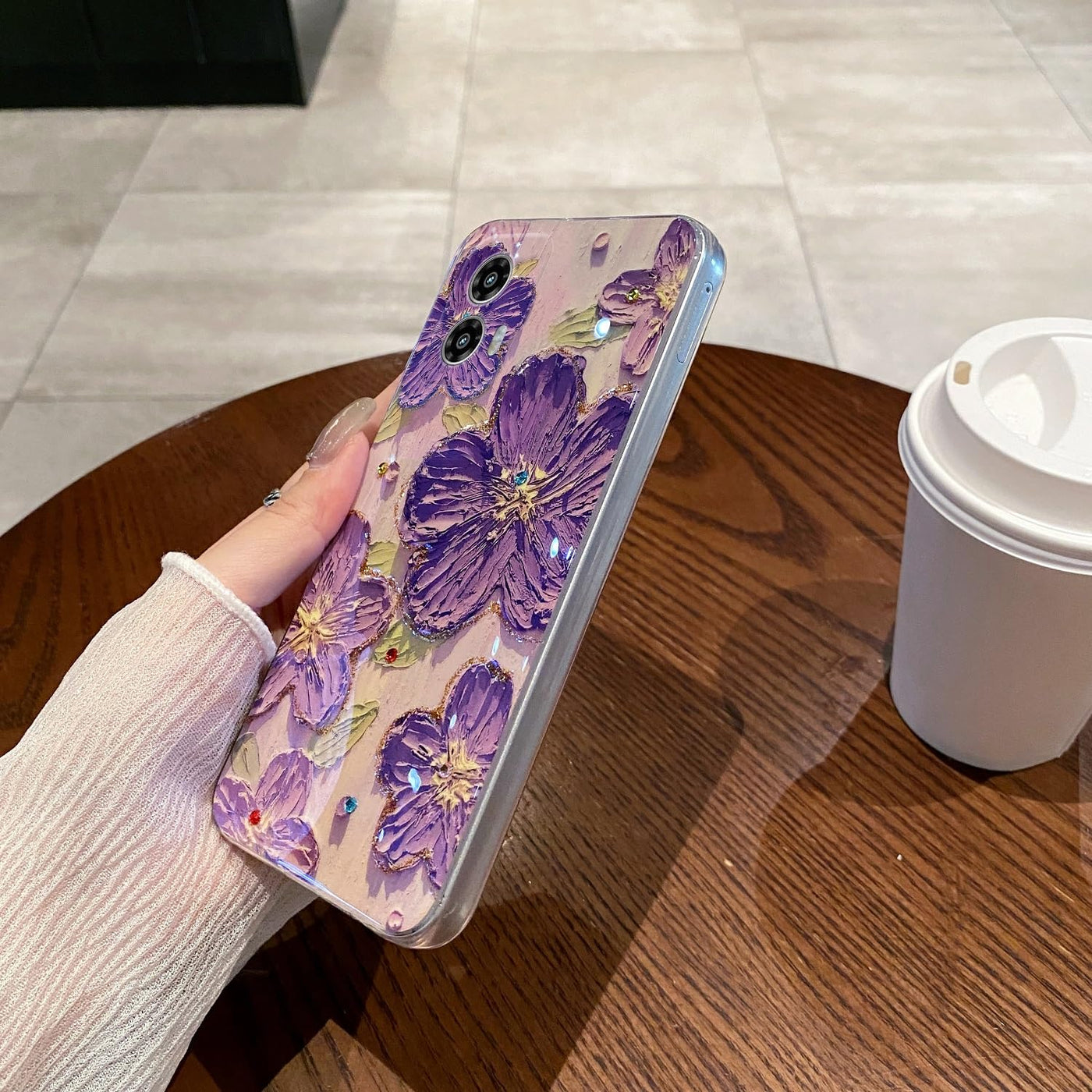 Leleyun Case For Motorola Moto G Stylus 5G 2024 6.7, Retro Oil Painting Printed Flower Cute Pattern With Glitter Gem Phone Cover Shockproof Protective Case For Girls Women