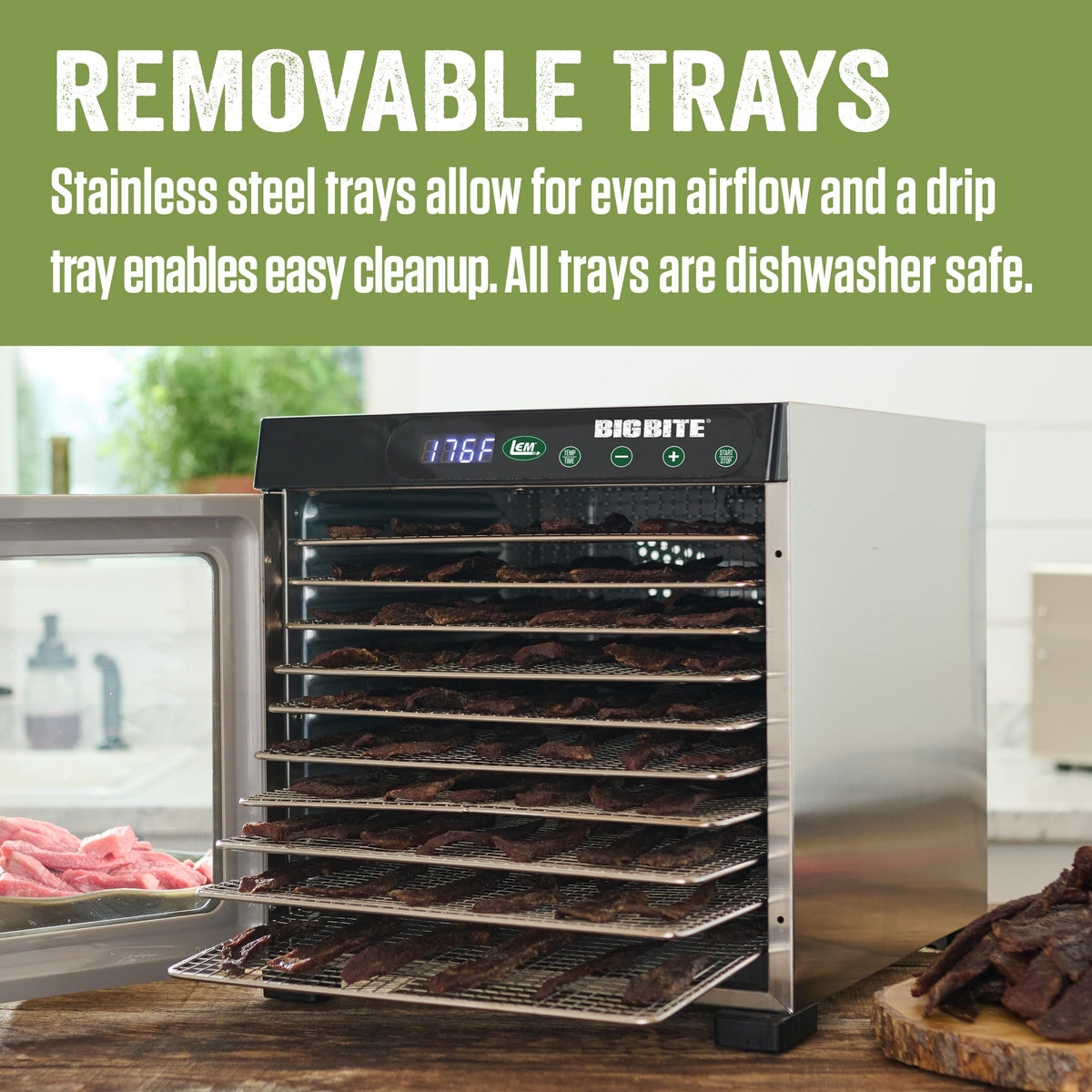 Lem Products Bigbite 10-Tray Stainless Steel Dehydrator, Food Dehydrator For Beef Jerky, Meat, Vegetables, And Fruits, Includes