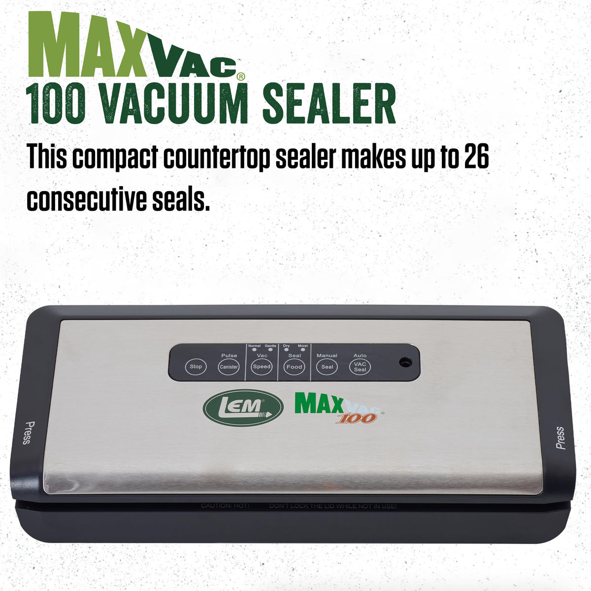 Upgrade Your Food Preservation Routine With A Quality Vacuum Sealer That Lets You Easily Store Your Favorite Foods For Extended Periods Without Freezer Burn. Lem Products Maxvac 100 Vacuum Sealer Is Perfect For Hunters, Food Processors, Chefs, And Culinary Enthusiasts Who Want To Make Preserved Foods. Incredibly Simple To Use, Our Vacuum Sealer'S Intuitive Controls Remove Air And Seal. The Powerful 22.4Hg (120W) Vacuum Pump Creates An Effective And Consistent Seal, Preserving The Freshness And Flavor Of Your Meats, Fish, Vegetables, Fruit, And More. Plus, The Dual Locks Pull The Lid Down Tight To Ensure A Tight Vacuum And Seal. The Maxvac 100 Can Also Be Used To Vacuum Seal Canisters With The External Vacuum Hose Port Located Under The Lid (Hose Attachment Not Included). So Get Your Lem Vacuum Sealer Today And Enjoy Extending Your Food'S Freshness And Freezer Life. As A Trusted Leader In Meat And Game Processing Equipment, Lem Products Is Dedicated To Enabling Hunters, Processors, And Home Cooks To Get The Job Done Professionally And Easily. With A Lifetime Of Hands-On Experience, We Know What It Takes To Make Home Processing Effortless.