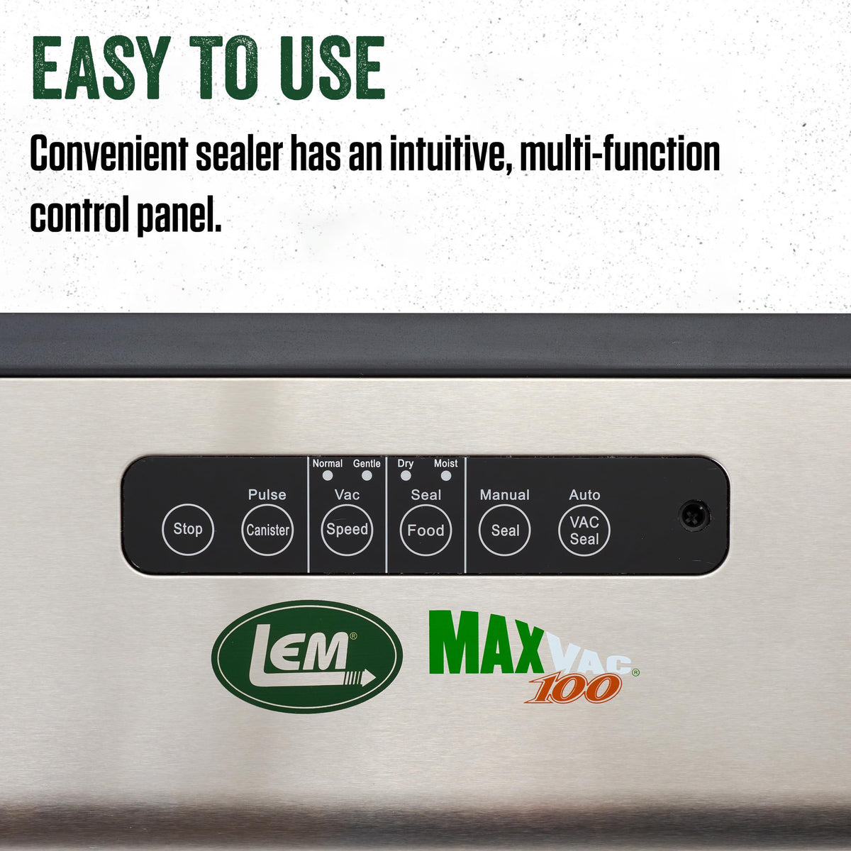 Q: Is the LEM MaxVac 100 easy to use for beginners?A: Yes, the LEM MaxVac 100 features user-friendly controls that make it simple for anyone to operate. Its intuitive design allows you to easily remove air and seal bags, making it a great choice for beginners looking to start food preservation.