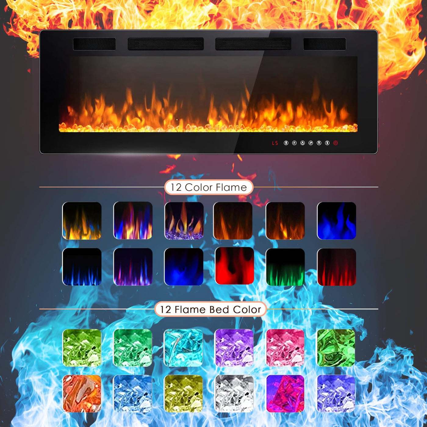 Lemberi 50 Inch Electric Fireplace Recessed And Wall Mounted,750/1500W Heater And Linear Fireplace With Touch Screen Control Pan