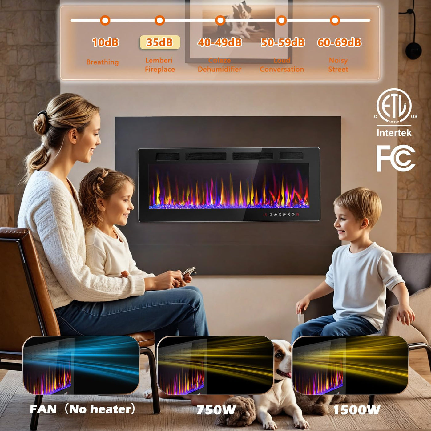 Q: Is the LEMBERI Electric Fireplace safe to use?A: Yes, the LEMBERI Electric Fireplace is ETL Certified and includes an auto-heat kill safety feature to prevent overheating, ensuring a safe and comfortable environment while you enjoy the warmth.