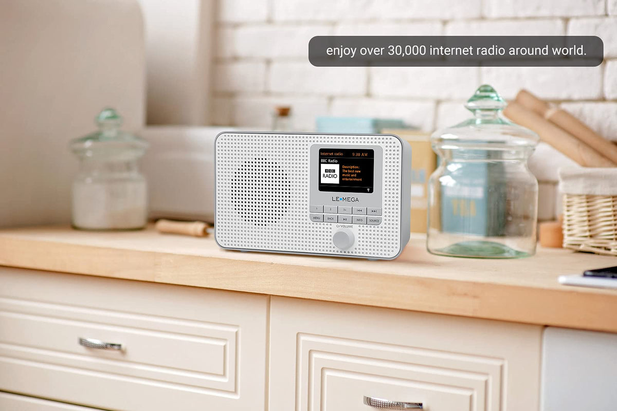 Lemega Ir1 Portable Wifi Internet Radio, Fm Digital Radio, Bluetooth, Dual Alarms Clock,Sleep Snooze Timer,40 Presets,Headphone Output, Colour Display,Batteries Or Mains Powered � Grey Finish