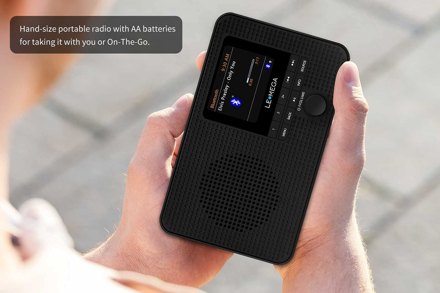 Lemega Ir1 Portable Wifi Internet Radio,Fm Digital Radio,Bluetooth Speaker,Dual Alarms Clock,Sleep Snooze Timer,40 Presets, Headphone Output,Colour Display,Batteries Or Mains Powered � Black Finish