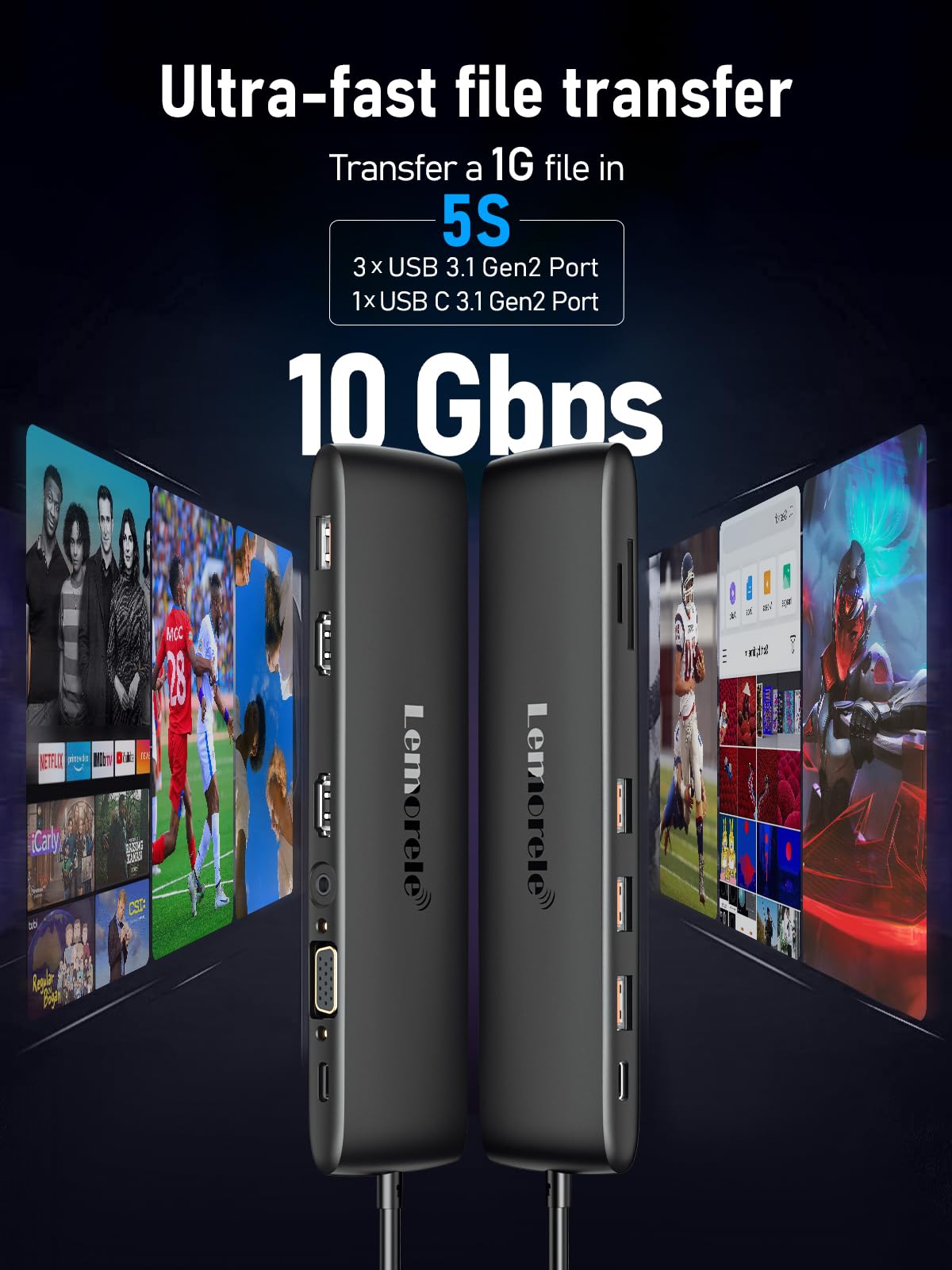 Lemorele Usb C Dual Monitor Docking Station For Dellhplenovosurface Laptop, 12 In 1 Triple Display Usb C Hub Multiple Dongle Adapter With 2 Hdmi 4K+Vga+4 Usb Port+100W Pd+Usb C Data+Sdtf+Audio