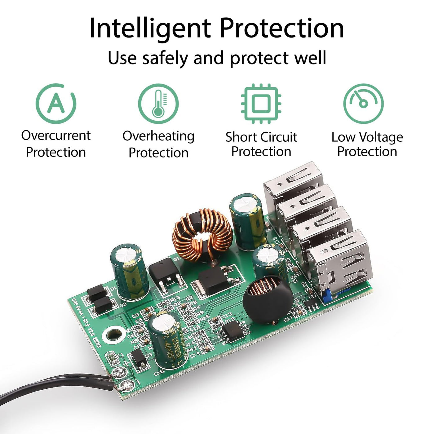 Q: How does this DC Converter protect my devices?A: The LeMotech DC Converter features multiple safety protections, including safeguards against overcurrent, overheating, short circuits, and low voltage. These features ensure that your devices are charged safely and efficiently.