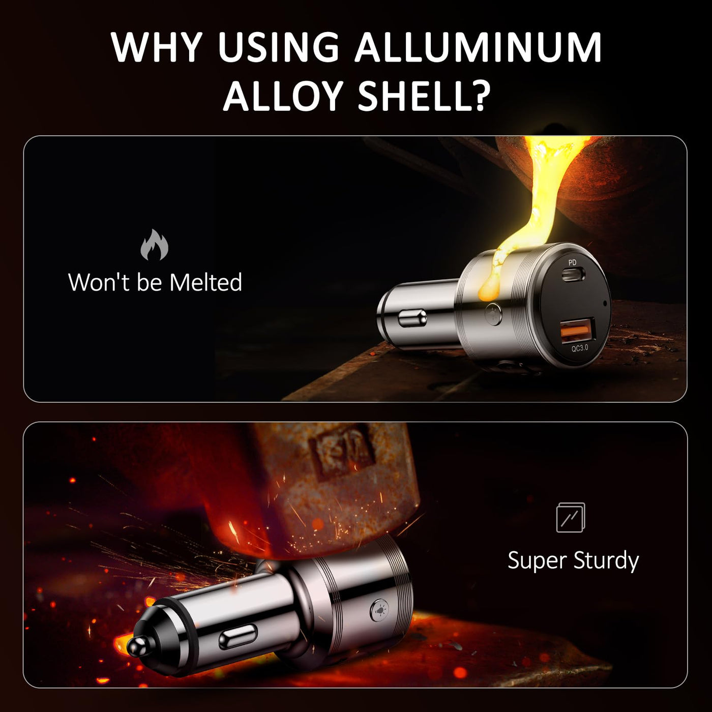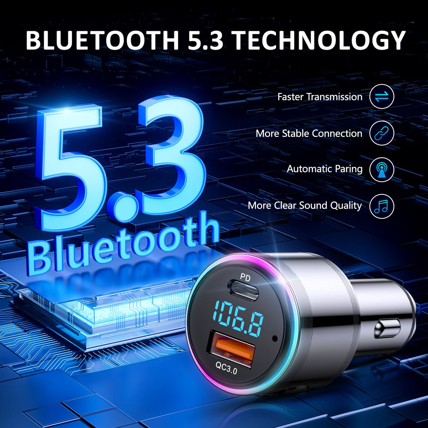 Lencent Bluetooth 5.3 Fm Transmitter,Full Metal Bluetooth Car Adapter With Pd 20W & Qc3.0 Fast Charger,Hi Fi Music/Clear Calling