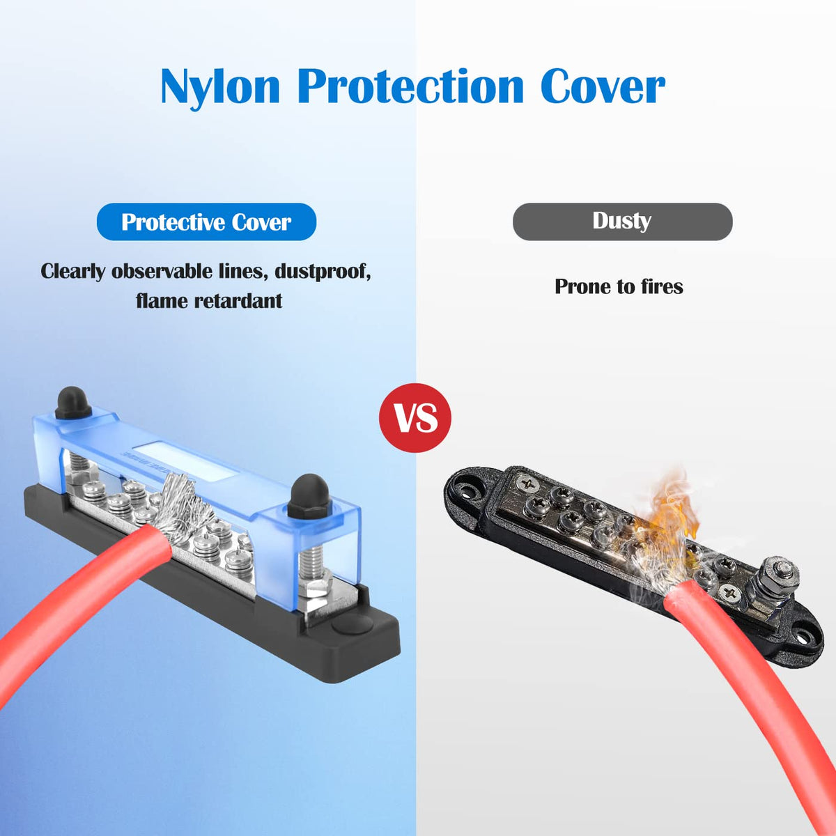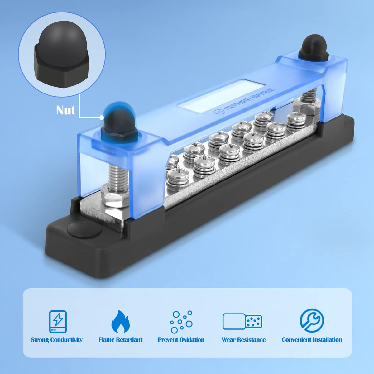 Lenkrad 150A Battery Bus Bar - 10 Terminal Power Distribution Block Bus Bars With Ring Terminals, 10 Way 8/32'' Screws, 2 Way 1/4'' Studs