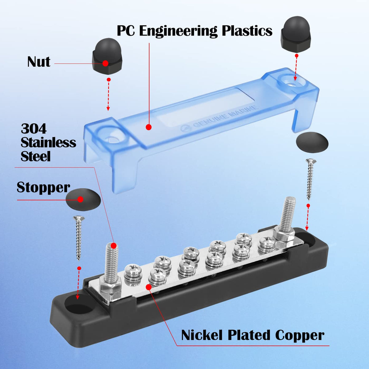 Lenkrad 150A Battery Bus Bar 10 Terminal Power Distribution Block Bus Bars With Ring Terminals, 10 Way 8/32'' Screws, 2 Way 1/