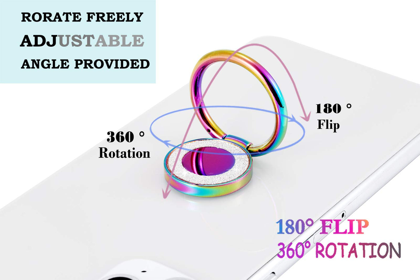 Usage Method:1. Wipe Away Dirt Dust On The Back Of Your Phones Or Tablets And Dry It Completely. 2. Peel Off The Back Of Paper.Dont Touch The Adhesive Surface By Your Hands. 3. Please Confirm The Position To Stick The Phone Ring As The Adhesive Is Not Reusable. 4. Press The Pad Hard Against Your Phone Or Tablet For 30 Seconds.Please Kindly Note That The Force Of The Adhesive Will Be Effective After 15 Min, Dont Use Or Pull Up Phone Ring After You Stick It On Your Phone. 5. Apply It On Flat Suface. The Adhesive Is Not Suitable For Textured /Leather/Silicon Phone Case. 6. Apply It On Small Size Tablet, It Might Be Not Strong Enough For Extra Large Tablet. Package Included: 1 Rainbow Phone Ring