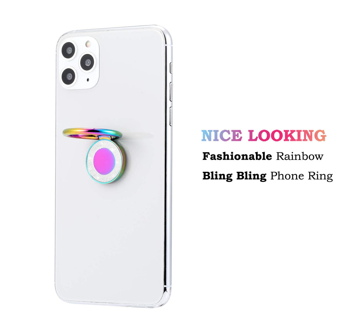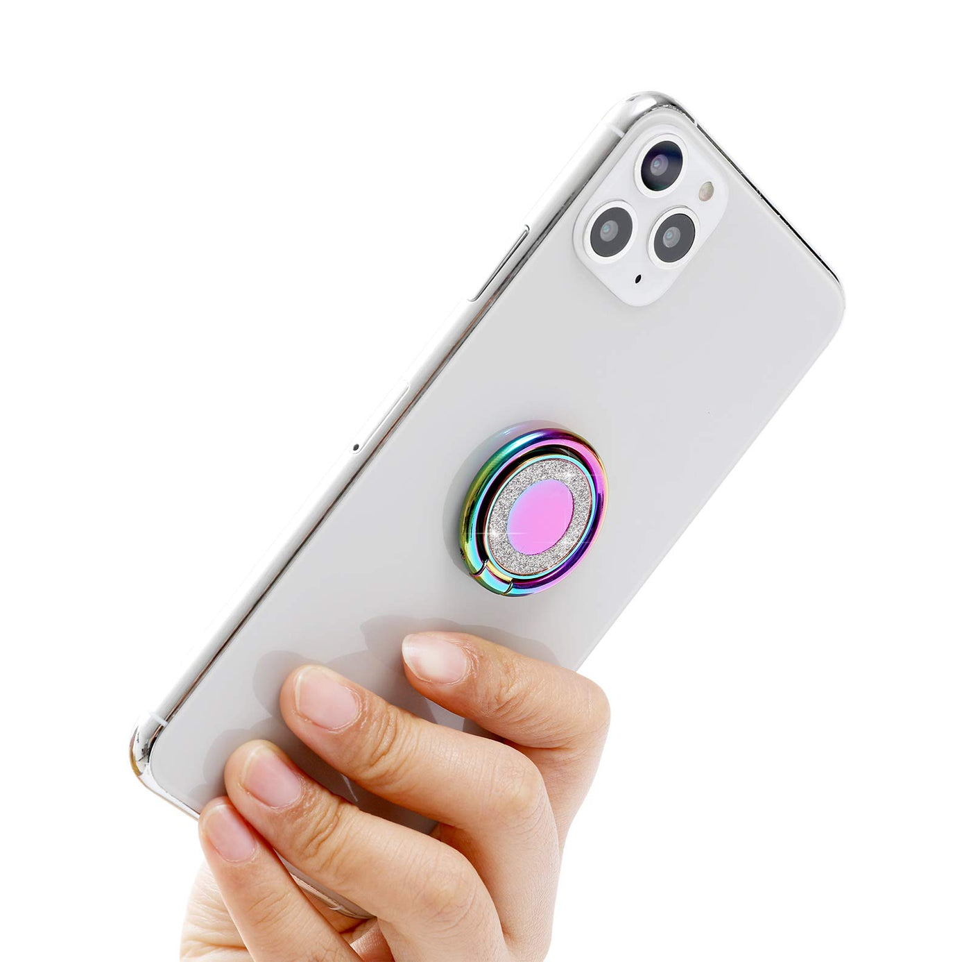 Lenoup Rainbow Glitter Bling Bling Phone Ring Holder,Iridescent Sparkle Phone Ring Kickstand,Cell Phone Finger Ring Grip For Alm