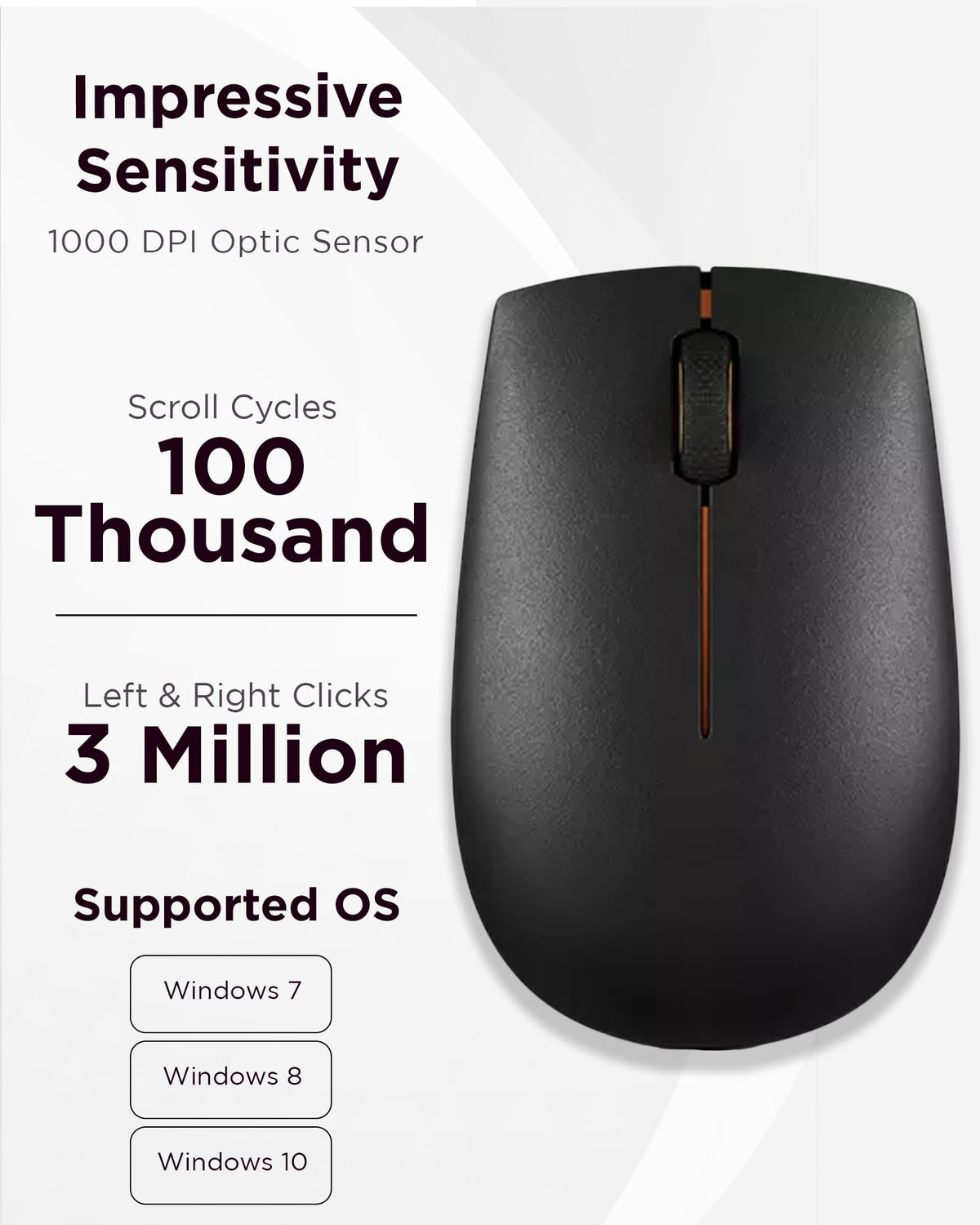 Q: What devices is the Lenovo 300 Wireless Mouse compatible with?A: The Lenovo 300 Wireless Mouse is compatible with PCs and laptops running Windows operating systems. It connects via a 2.4 GHz Nano USB receiver, making it easy to use with any USB-enabled device.