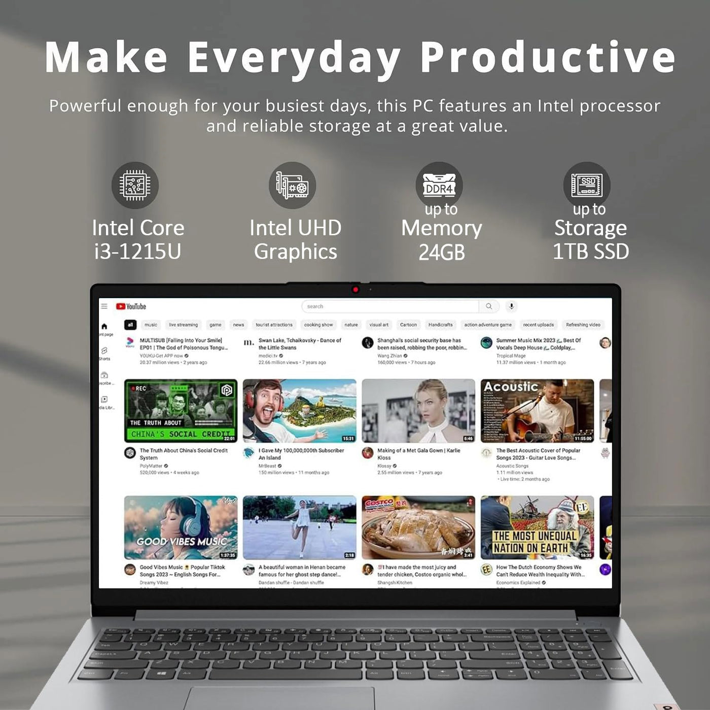 Key Features And Benefits: Cpu: Intel Core I3-1215U Processor (6 Cores, 8 Threads, 10Mb L3 Cache, Base Frequency At 0.9 Ghz, Up To 4.4 Ghz At Max Turbo Frequency) Memory: Up To 24Gb Ram Hard Drive: Up To 1Tb Pcie Solid State Drive Operating System: Windows 11 Home Graphics: Intel Uhd Graphics Display: 15.6 Fhd (1920X1080), Ips, 300Nits, Anti-Glare, Touchscreen Ports: 1 X Card Reader 1 X Usb 2.0 1 X Power Connector 1 X Usb 3.2 Gen 1 1 X Hdmi 1 X Usb-C 3.2 Gen 1 (Data Transfer Only) 1 X Headphone / Microphone Combo Jack (3.5Mm) Wireless Connectivity: Wi-Fi 6 Dimensions: 14.18 X 9.29 X 0.70 Inches Weight: 3.59 Lbs Color: Grey