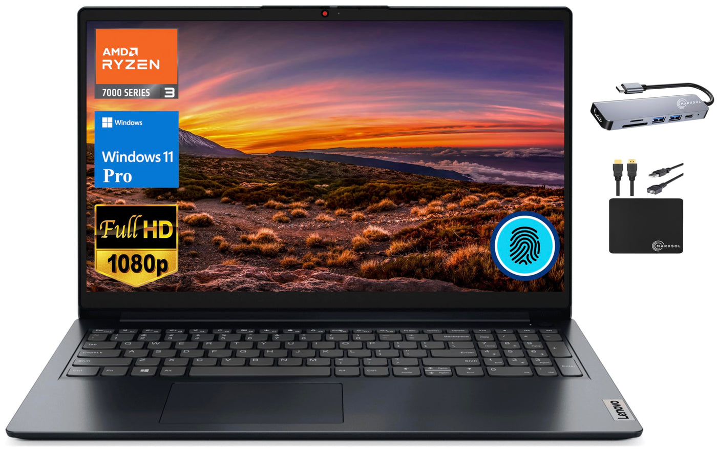 Browse, Explore And Connect With Confidence On The Lenovo Ideapad 1 Powered By Amd Ryzen 7000 Series Processor. The Ideapad 1 Packs Responsive Performance In A Thin And Compact Design, Making Multitasking On The Go A Breeze. Get The Most Out Of Your Device With A Frameless Display For More Screen And Dolby Audio Speakers, Along With Long Hours Of Battery Life And Rapid Charge.&Nbsp;Processor: Amd Ryzen 3 7320U (Base 2.4Ghz, Up To 4.1Ghz, 4Mb Cache, 4 Cores, 8 Threads)Graphics: Amd Radeon 610M Graphicsoperating System: Windows 11 Promemory: 8Gb Lpddr5-5500 Ramstorage: 512Gb Pcie Nvme M.2 Ssdoptical Drive: Nodisplay: 15.6 Fhd (1920 X 1080) Tn 220Nits Anti-Glarewireless Connectivity: Wi-Fi 6 + Bluetooth 5.1Audio: Stereo Speakers, 1.5W X2, Dolby Audiokeyboard: Us English, Non-Backlit Full Size Keyboardwebcam: Hd 720P With Privacy Shuttercard Reader: Multi-Format Sd Media Card Readerfingerprint Reader: Touch Style, Integrated In Power Buttonports:1X Usb-A 3.2 Gen 11X Usb-C 3.2 Gen 11X Usb 2.01X Card Reader1X Hdmi 1.4B1X Headphone/Microphone Combo Jack (3.5Mm)1X Power Connectorbattery: 3-Cell, 42 Wh Li-Ioncolor: Abyss Bluedimensions (W X D X H): 14.18 X 9.29 X 0.70 Inchesweight: 3.48 Lbsaccessory: Marxsolaccessory (6-In-1 Usb-C Docking Station Hub With Usb 3.0, 4K-Hdmi, Usb-C Connection, Sd/Tf Card Reader)