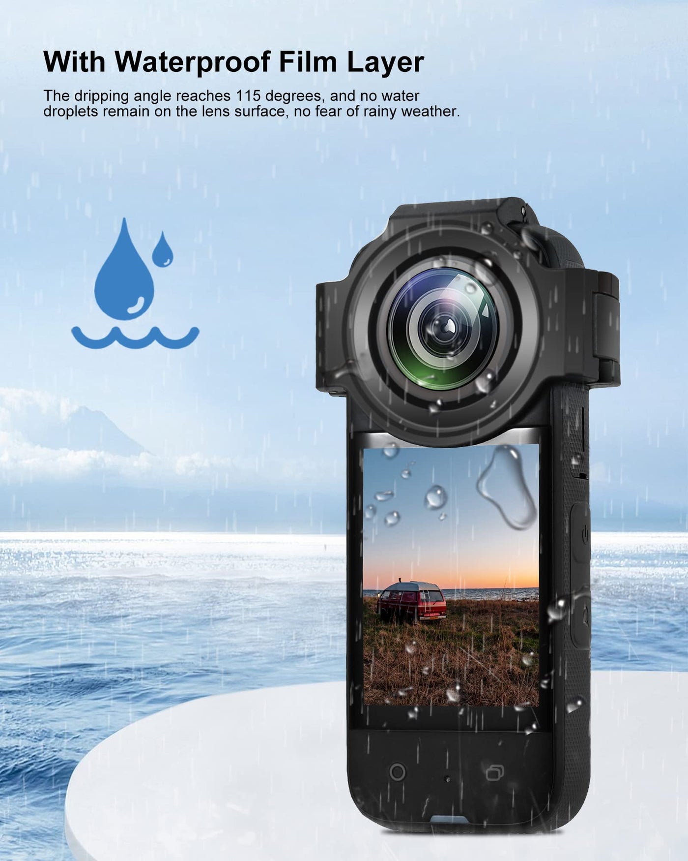 Q: Is the Lens Guard Waterproof?A: Yes, the lens protector is coated with an anti-water film layer, allowing a drip angle of up to 115 degrees, effectively preventing water droplets from affecting your shooting.