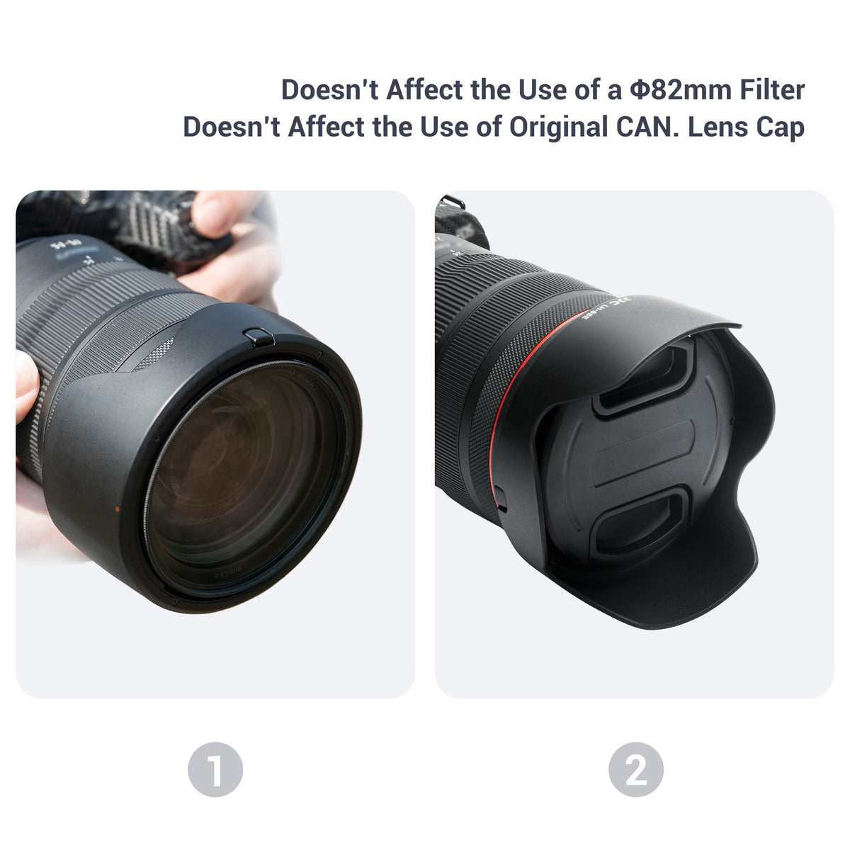 Q: What size filter and lens cap can I use with this hood?A: The lens hood allows for the attachment of Ф82mm filters and Ф82mm lens caps, making it convenient for users who want to enhance their photography setup.
