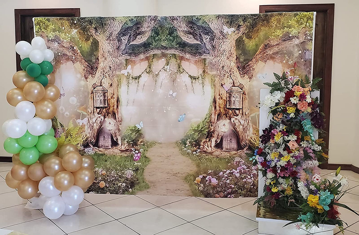 Leowefowa 8X6Ft Jungle Forest Backdrops Fairytale Spring Enchanted Forest Dreamland Flowers Butterflies Photography Background F