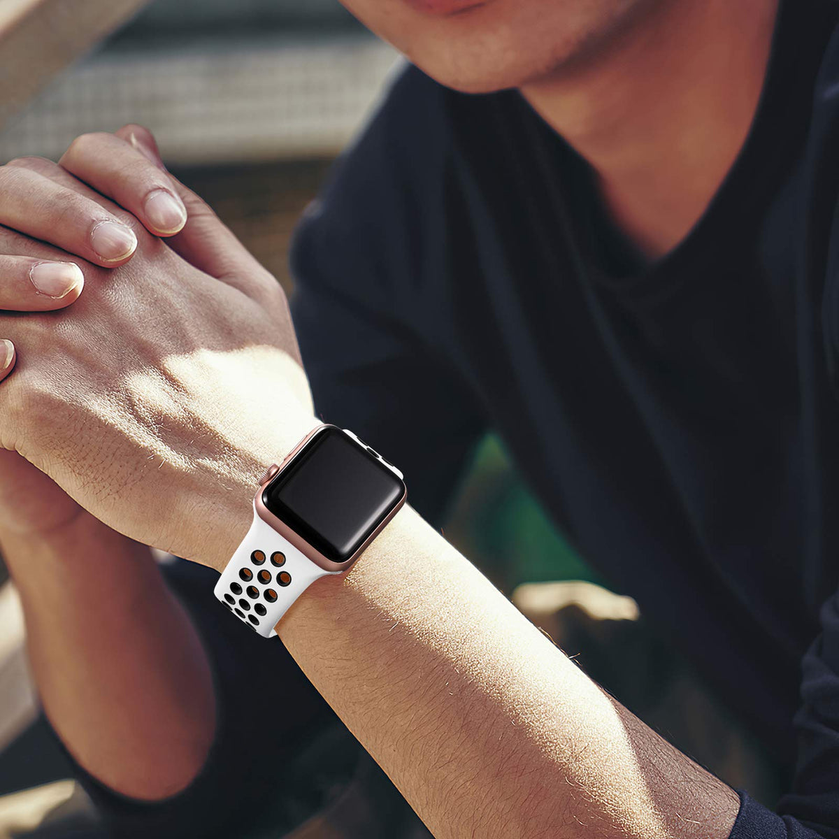 Q: Are these bands compatible with all Apple Watch models?A: Yes, the Lerobo silicone bands are compatible with all versions of the Apple Watch, including Series 8, Series 7, Series 6, Series 5, Series 4, Series 3, Series 2, and Series 1, as well as the Apple Watch SE. It's important to check the size on the backside of your watch to ensure the correct fit.