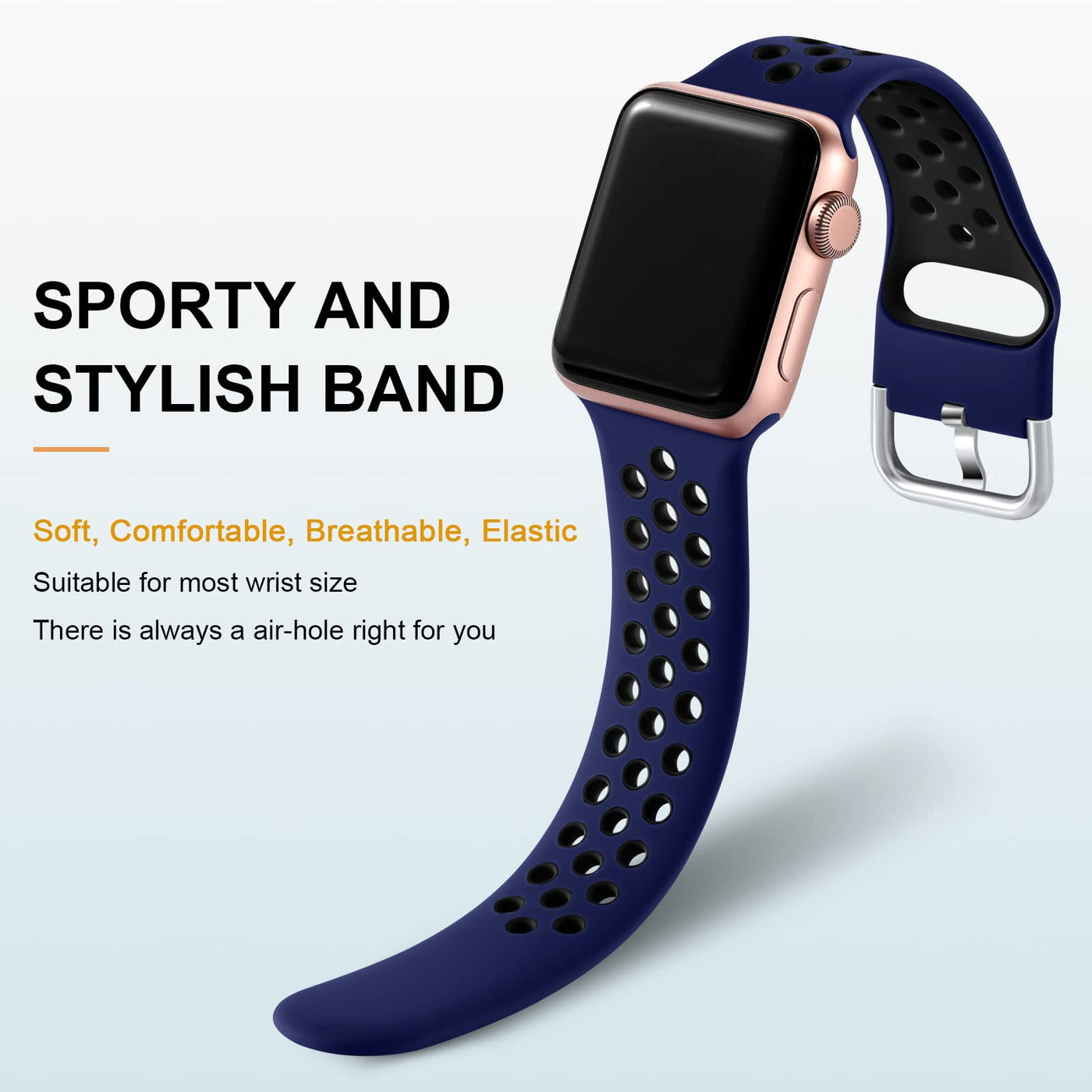 Q: What makes the Lerobo Silicone Band different from other watch bands?A: The Lerobo Silicone Band features a unique double-color design that allows you to express your personal style while enhancing the look of your Apple Watch. Additionally, it is designed for comfort with air holes for ventilation, a secure fit, and is water and sweat-resistant, making it suitable for various activities.