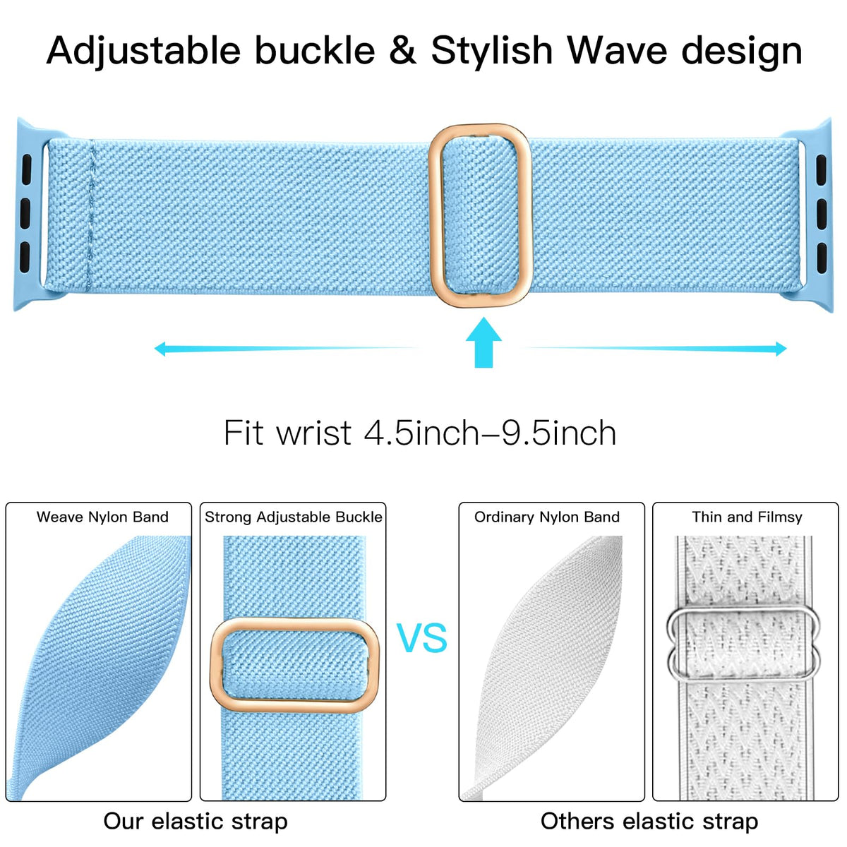 Q: What material is the Lerobo watch band made of?A: The Lerobo watch band is made from skin-friendly and breathable nylon material, ensuring comfort during everyday wear. Its elastic design allows for a snug fit without irritation.