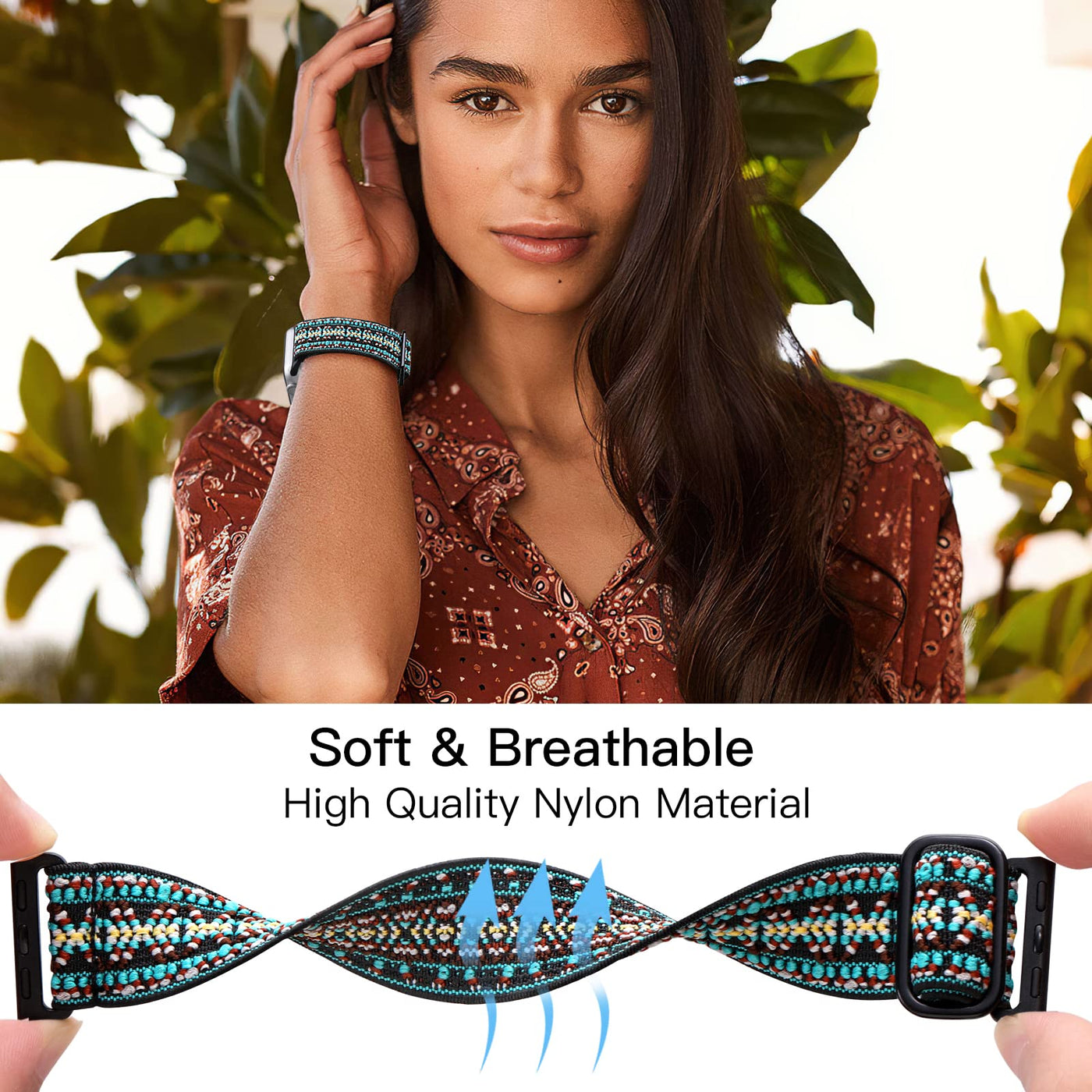 Q: What material is the Lerobo Band made from?A: The Lerobo Band is made from skin-friendly woven nylon, which is breathable, lightweight, and comfortable for all-day wear. Its elastic properties help prevent skin irritation.