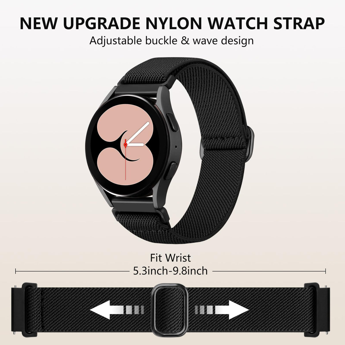 Lerobo Soft Nylon Eastic Band Compatible With Galaxy Watch 7 Band: Elevate Your Style And Comfort Elevate Your Watch Experience For Galaxy Watch 6 Band, A Perfect Blend Of Style, Comfort, And Versatility.Adding A Touch Of Personal Flair To Your Daily Adventures. Compatible With Samsung Watch 7 6 5 4 Band: This Compatible With Galaxy Watch Active 2 Band Is Designed To Be Compatible With A Wide Range Of 20Mm Straps, Giving You The Freedom To Choose The Perfect Style To Suit Your Mood And Outfit. Skin-Friendly, Breathable Materials: Crafted From Skin-Friendly And Breathable Materials, This Band Is Gentle On Your Skin Even During Long Hours Of Wear. The Soft Materials Ensure That Your Wrist Stays Comfortable And Cool, Whether You'Re Hitting The Gym, Attending Meetings, Or Exploring The Great Outdoors. Unique Designs For Daily Wear: Stand Out From The Crowd With For Galaxy Watch Band'S Range Of Unique Designs. From Minimalist Elegance To Bold Statement Pieces, There'S A Style For Every Occasion. Whether You'Re Dressing Up For A Special Event Or Keeping It Casual For A Day Out, This Band Complements Your Daily Attire Effortlessly. Secure And Easy Installation: Say Goodbye To Fumbling With Complicated Installations. This For Galaxy Watch 6 4 Classic Band Is Designed For Hassle-Free Attachment To Your For Galaxy Watch. Simply Slide It Into Place And Secure It With Ease, Giving You The Peace Of Mind That Your Watch Is Safe And Secure. Elasticity And Size Adjustability: With Its Elastic And Adjustable Design, Band Offers Flexibility And Freedom Of Movement. Whether You'Re Typing Away At Your Desk, Hitting The Track For A Run, Or Simply Going About Your Day, This Band Moves With You, Ensuring Comfort Without Compromising Style. Perfect For Everyday Use: Whether You'Re A Fitness Enthusiast, A Fashionista, Or A Professional On The Go