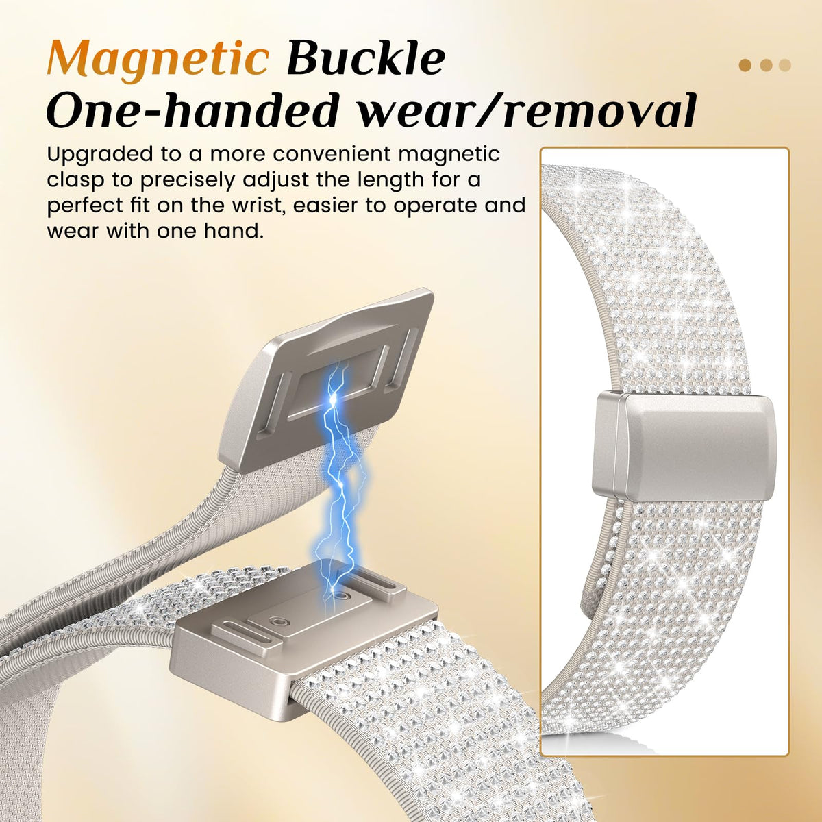 Q: How does the magnetic adjustable buckle work on this band?A: The LETOID band features a 4th generation stainless steel magnetic adjustable buckle that allows for easy on and off. The strong magnetic clasp ensures a secure fit, preventing the band from coming loose during activities.