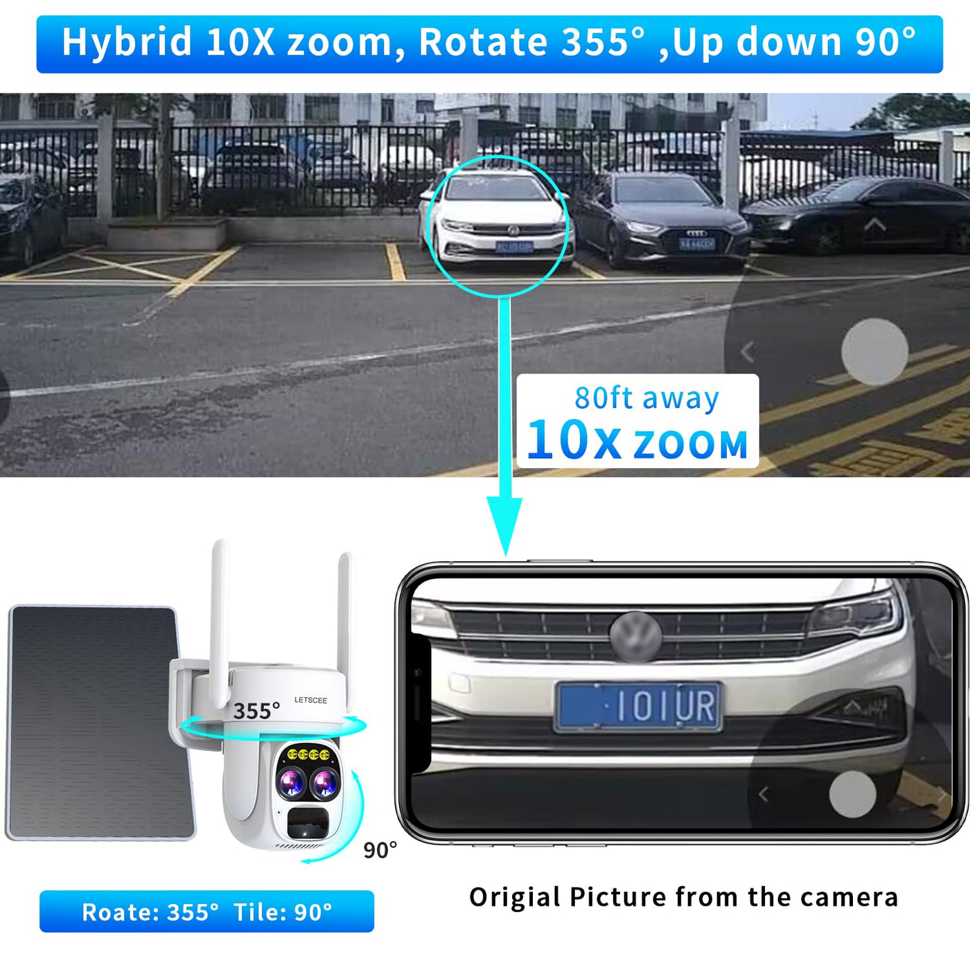 Letscee Cameras For Home Security Wireless Outdoor Solar,Alexa Security Camera Outside,360 Ptz Outside Wifi Camera Dual Lens 10X