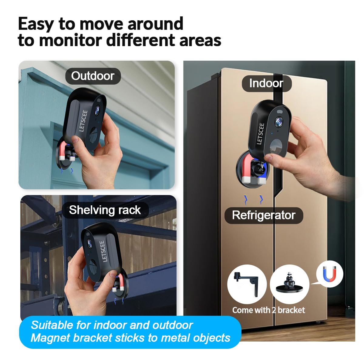 Letscee Wireless Battery Cameras Outdoor.Indoor Outdoor Home Security Cameras, With Night Version,Motion Detection,2 Way Audio,W
